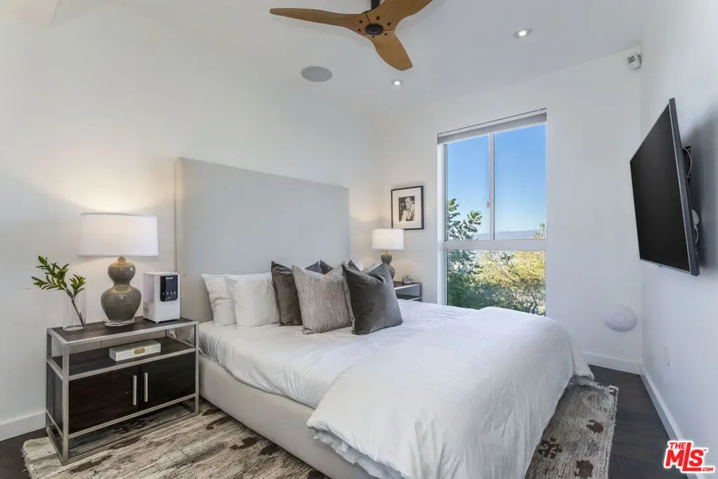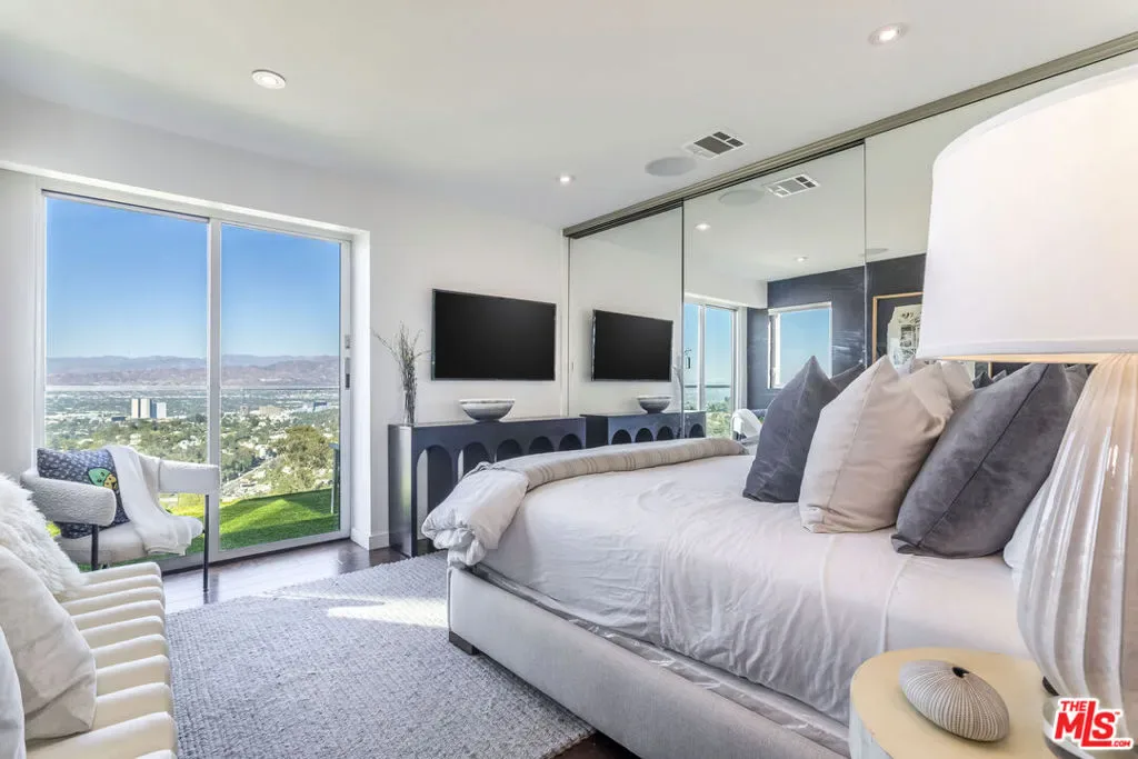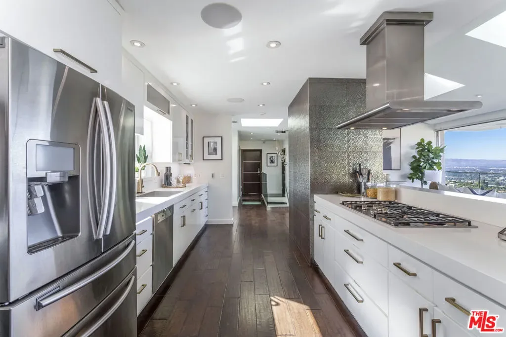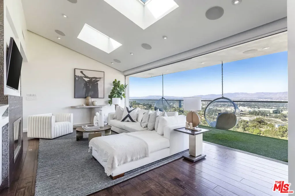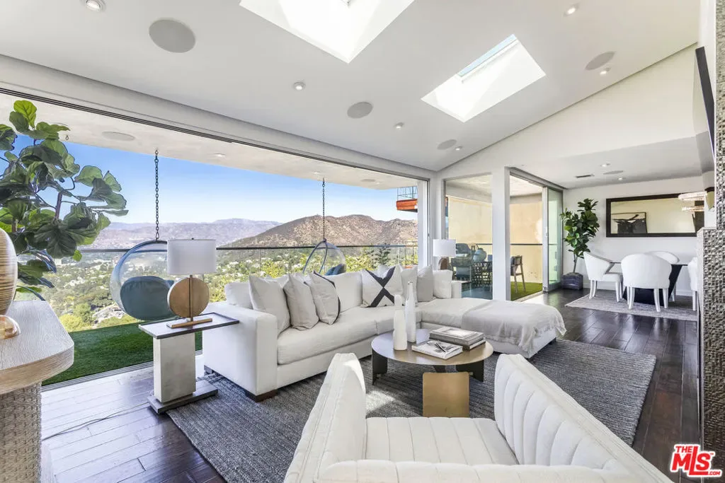 Stunning contemporary Hollywood Hills home with a separate guest house and panoramic views of city lights and the Hollywood Sign. Behind a gated entry, the open floor plan features skylights, a chef’s kitchen with Miele appliances, and seamless indoor-outdoor living with floor-to-ceiling sliding doors opening to an expansive deck, jacuzzi included. The primary suite offers a fireplace, walk-in closet, and spa-like bath with a see-through tub. The detached guest house includes its own kitchen, living area, bedroom, and bath, plus a large view deck. Attached 2-car garage.* Current furniture may differ from photos *
