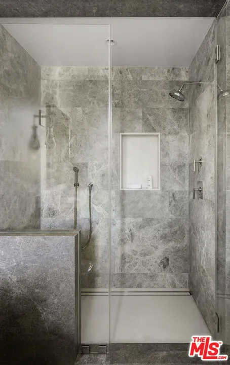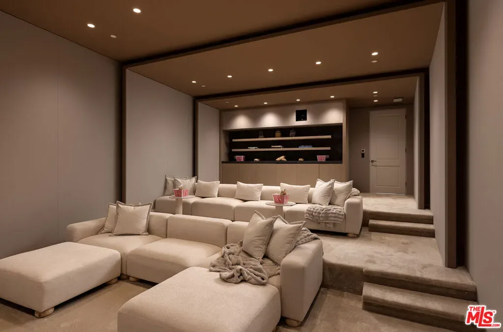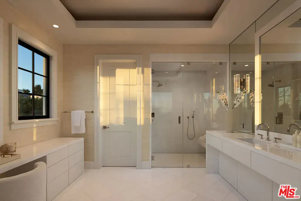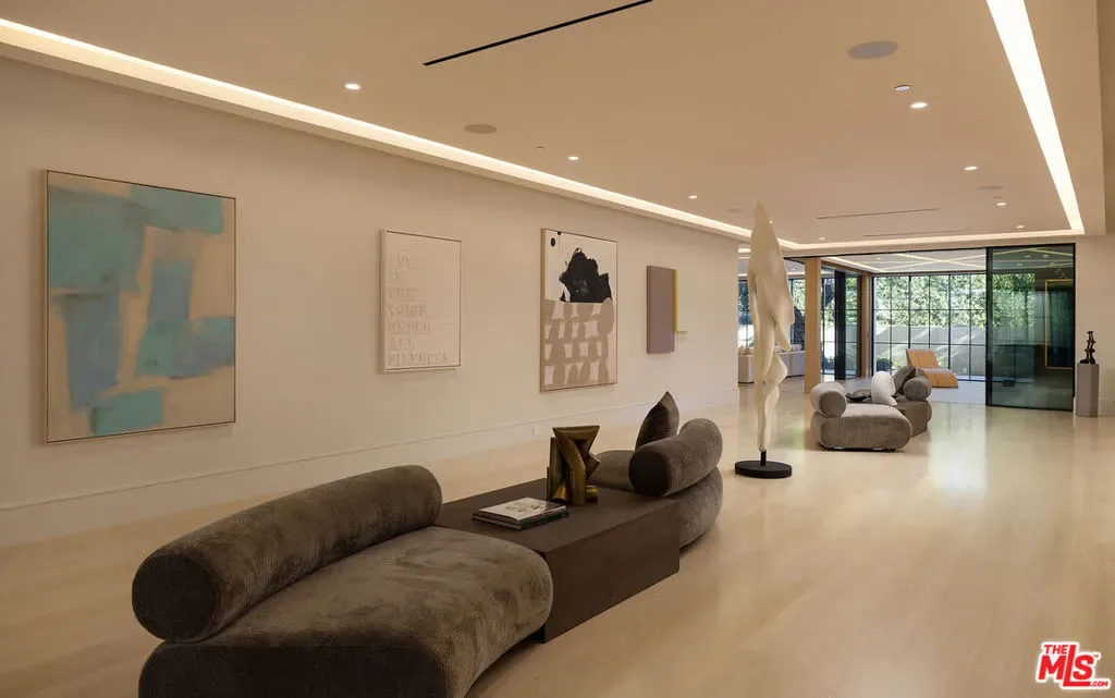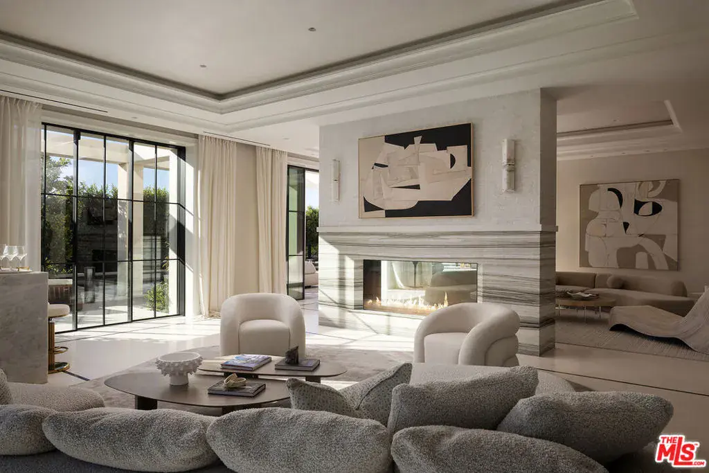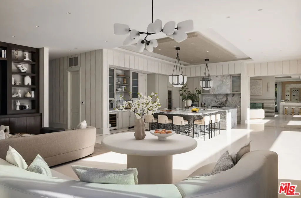 Envisioned by architect to the stars Philip Vertoch and crafted alongside award-winning, AD100-named design studio Ingrao Inc, The Bonhill represents a masterclass in blending architectural precision with timeless style. Concealed behind privacy gates with mature hedges lining its perimeter, this immaculate ocean-view estate includes multiple outdoor terraces offering spectacular panoramas, a sprawling grassy lawn, and premier amenities composed of fine materials. An impressive foyer provides a sense of continuous space with its floating limestone staircase as centerpiece, each step repeating in soft, rhythmic progression. An elegant dual-sided Cristallo marble fireplace partitions the formal living room and nearby parlor with stylish marble wet bar as soothing breezes waft through paned French and pocket doors. The true marvel of the home is its culinary center, a fusion of Farmhouse and transitional forms, a blissful yet understated display of calming hues and varied texture, optimized for casual indoor-outdoor living and entertaining. There are two center islands, custom-fitted designer cabinetry, wine refrigeration, chef-grade Gaggenau and Sub-Zero appliances, and preparation kitchen. Both the formal dining room and the library are nods to traditional, classic style. Upstairs, the owner’s suite opens to a vast patio with incredible views of the Pacific, Catalina Island, treetops, mountains, and urban sprawl. Its sleek, spa-inspired bath includes a soaking tub, oversized shower, makeup desk, toilet room, and dual-sink vanity. There are also two walk-in closets and a secondary en-suite marble-clad bath. From the spacious rooftop deck, serve party guests, barbecue and serve light bites, and recline with fantastic vistas as backdrop. For lazy mornings and warm afternoons, a pajama room transitions to a sunny travertine balcony surrounded by lush greenery, reminiscent of summers abroad. Standout luxe amenities include a state-of-the-art gym, theatre with refreshment bar, art gallery, wine tasting/cigar lounge, and wellness spa with steam shower, massage room, and dry sauna. An elevator connects all levels. Outside, lounge poolside under open-air verandas and meditate in peaceful gardens. The pool includes a baja shelf and accompanying cabana with bar and shower. The long pebble driveway leads to a finished subterranean garage affording parking for eight vehicles, bringing the grounds’ total capacity to 17 or more. Relish an idyllic, peaceful existence positioned in Brentwood’s Bonhill-Tigertail estates section, one of the world’s most sought-after, celebrity locales.
