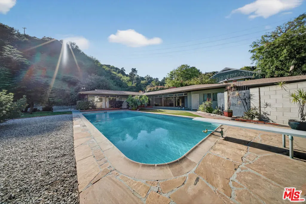 Evoking the laid-back glamour of the Frank Sinatra era, this true 1951 mid-century private celebrity hideaway rests at the end of a quiet cul-de-sac on a huge rare flat lot in the Hollywood Hills, presenting a rare fixer opportunity. The single-story design offers a generous footprint with 5 bedrooms and 4 bathrooms, wood-beamed ceilings, a dramatic fireplace, and expansive windows that frame pool and city views, all nodding to its classic mid-century soul and providing an ideal possibility to update, expand, or reimagine. The expansive grounds create a spectacular stage for outdoor living and entertaining, easily accommodating poolside cocktail parties and glamorous gatherings with room for hundreds of guests that begin at sunset and linger well into the early hours, while also offering the privacy and tranquility of a secluded hillside retreat. Surrounded by multi-million-dollar estates, the location alone makes this a compelling value-add opportunity for investors, designers, or buyers looking to reawaken the potential of a classic property. Private, substantial, and rich with potential, this is a rare chance to revive a mid-century gem or craft something entirely new. Priced to sell. Don’t miss this great opportunity.