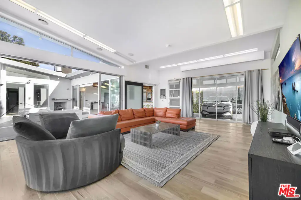 Located in the Hollywood Hills, this mid-century modern home offers panoramic views from Downtown to the Valley. Designed for seamless indoor-outdoor living, the property features disappearing glass walls that open to a spacious patio with an infinity-edge pool and fire pit, ideal for entertaining. The home includes a gourmet kitchen with Miele appliances and European finishes. The master suite offers a fireplace, ensuite bath, and direct access to the pool. Conveniently located near the Hollywood Bowl, Runyon Canyon, and the Sunset Strip, this property provides both tranquility and easy access to major attractions. This property is an ideal retreat for those seeking luxury and privacy in the heart of the Hollywood Hills.