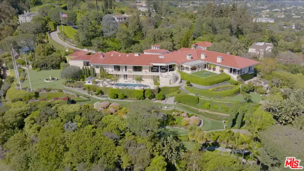One of the most important residential properties in Los Angeles. Located in the most prime section of Bel Air, Villa dei Fiore is reminiscent of the great homes on the Amalfi Coast and world class estates throughout Europe. Built with incredible scale and detail, the perfect home for entertaining boasts an illustrious history of hosting US Presidents and dignitaries. Situated on 3.3 exquisite acres (3 legal lots) and overlooking breathtaking views spanning across all of Los Angeles. A long private driveway located behind gates leads to this majestic estate. Enter through a spectacular two story oval foyer with floor to ceiling glass overlooking panoramic city to ocean views. High ceilings and wood carved doorways lead to a grand formal living room, beautiful paneled library, magnificent dining room adorned with 18th Century French wallpaper, gourmet chef’s kitchen with butler’s pantry & auxiliary kitchen. The lower entertainment level features a screening room, wine cellar, lounge, bar and kitchenette. There is an incredible primary suite wing that features a sitting room, arched loggia and luxurious bath and expansive closets. Additional amenities include a private 2bd/2bath guest house with separate gated entrance and parking, an additional 2 bd guest house with 1 bd and 1.5 bth on top level and 1 bd/1 bth on lower level. Park-like grounds include botanical gardens, waterfalls, rose garden, koi ponds, padel court, tropical flowers, plants and palm trees. Shown to prequalified clients only.