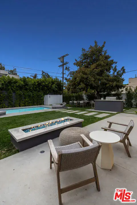 This property comes fully furnished and is all set for you to move in right away. Immerse yourself in the epitome of luxury and tranquility with this stunning, newly constructed home in Beverly Grove. This architectural masterpiece welcomes you with a sweeping open floor plan and elegant oak wood floors. The main level features an executive office, a cozy fireplace-accented living room, and a chef’s kitchen equipped with Thermador appliances, a stone-topped center island, and expansive sliding glass doors leading to the meticulously manicured backyard. Step outside to discover an outdoor oasis boasting a fully equipped kitchen, a comfortable lounge area, and a magnificent pool and spa surrounded by lush Ficus plants for ultimate privacy and serenity. Ascend the floating stairs to the opulent master bedroom with a deluxe en-suite bathroom, his-and-hers closets, and a terrace overlooking the peaceful backyard. Three spacious bedrooms, one with a terrace offering street views, complete this level. The lower level is an entertainer’s dream with a generous great room, state-of-the-art theater, two additional en-suite bedrooms, a storage room, a laundry room, and a captivating glass wine cellar. This privately gated home is just steps away from Los Angeles’ finest dining and shopping, making it the perfect residence for those seeking elegance and convenience.