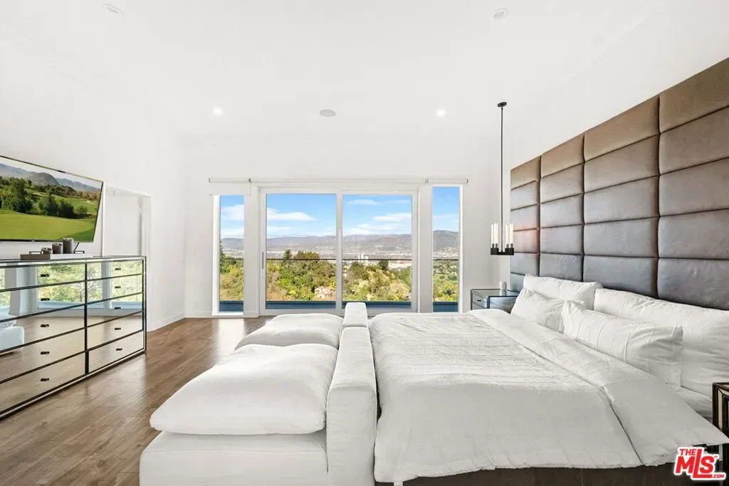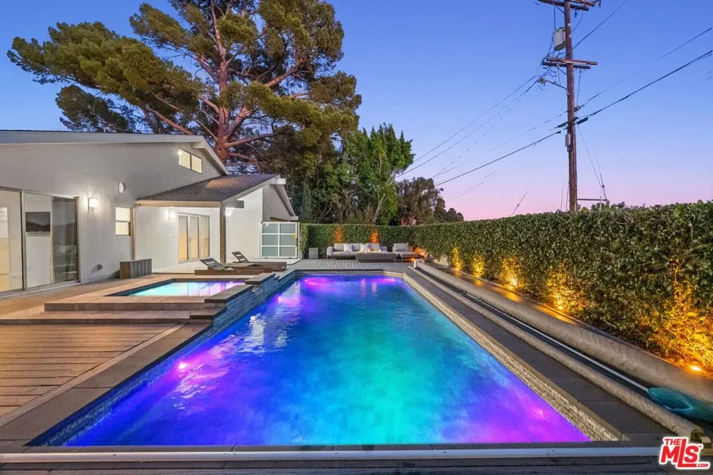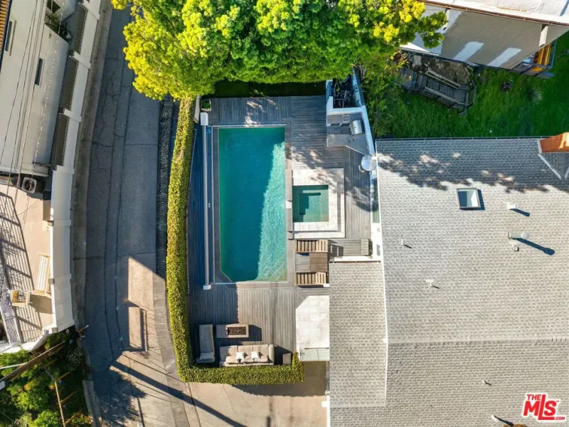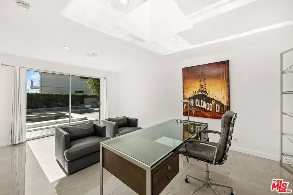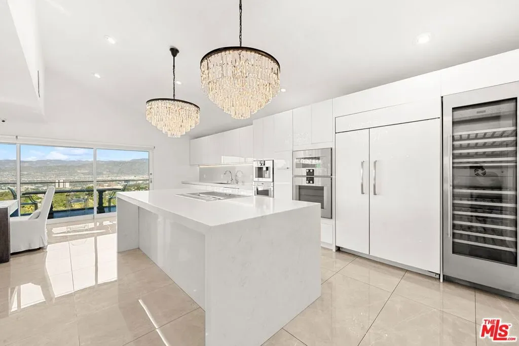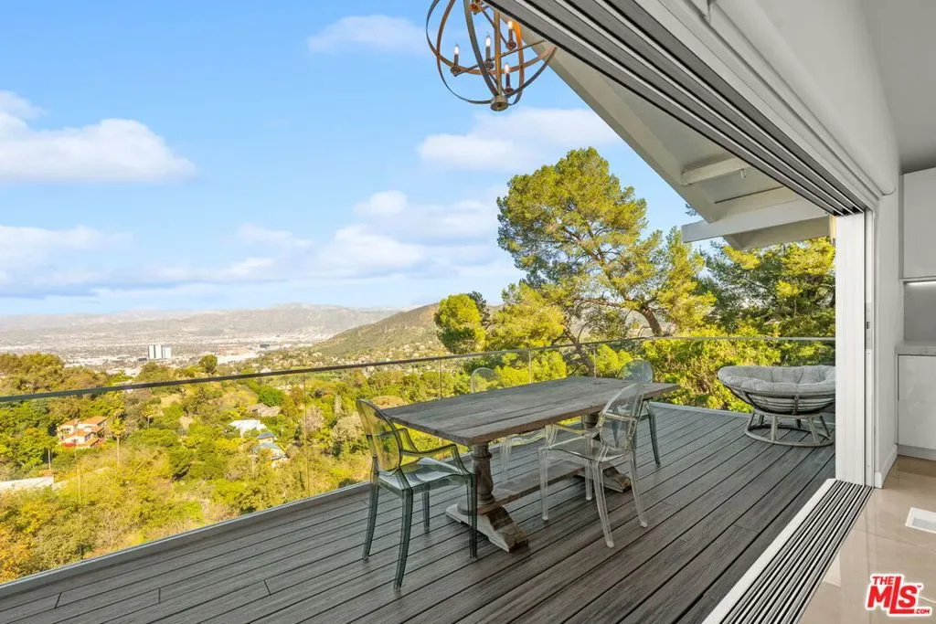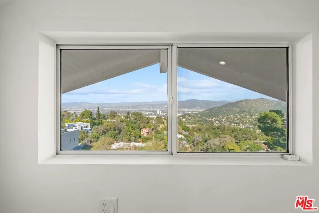 Stylish elegance meets breathtaking panoramic views, creating a true floating-above-the-city experience. This refined residence blends sophisticated design with open architectural flow and seamless indoor-outdoor connectivity, capturing sweeping vistas throughout while offering a private retreat crafted for elevated Los Angeles living. The home features 4 bedrooms, three located on the lower level, and one on the main level currently configured as an office along with a spacious loft/flex space suitable for guests or media use (not counted as a fifth bedroom). Additional amenities include a private screening room and a garage area configured for gym or wellness use. Sonos sound system throughout. The main living level showcases the home’s most impressive vantage points, highlighted by expansive dual-pane windows and dramatic multi-panel Fleetwood sliding glass doors opening accordion-style to panoramic scenery. An open chef’s kitchen flows seamlessly into the living area anchored by a statement fireplace and striking designer lighting, creating an inviting setting for entertaining.Kitchen features include Gaggenau appliances, marble countertops, and generous preparation space, connecting naturally to the dining area, glass-enclosed balconies, and outdoor gathering areas surrounding the pool, spa, and BBQ entertaining space. On the lower level, the primary suite enjoys sliding glass doors framing scenic views, complemented by custom walk-in closets and a spa-inspired bath featuring dual vanities, soaking tub, and separate shower. Two additional bedrooms share this level along with a third bathroom and laundry area. Designer finishes include marble accents, marble and hardwood flooring, and a carpeted theatre room with projection setup. Outdoor living is enhanced by private access steps leading directly to Runyon Canyon trail access, while maintaining close proximity to Sunset Boulevard, Laurel Canyon and Mulholland Drive. Sophisticated and thoughtfully designed, this residence delivers luxury, privacy, and layered view experiences across multiple levels.