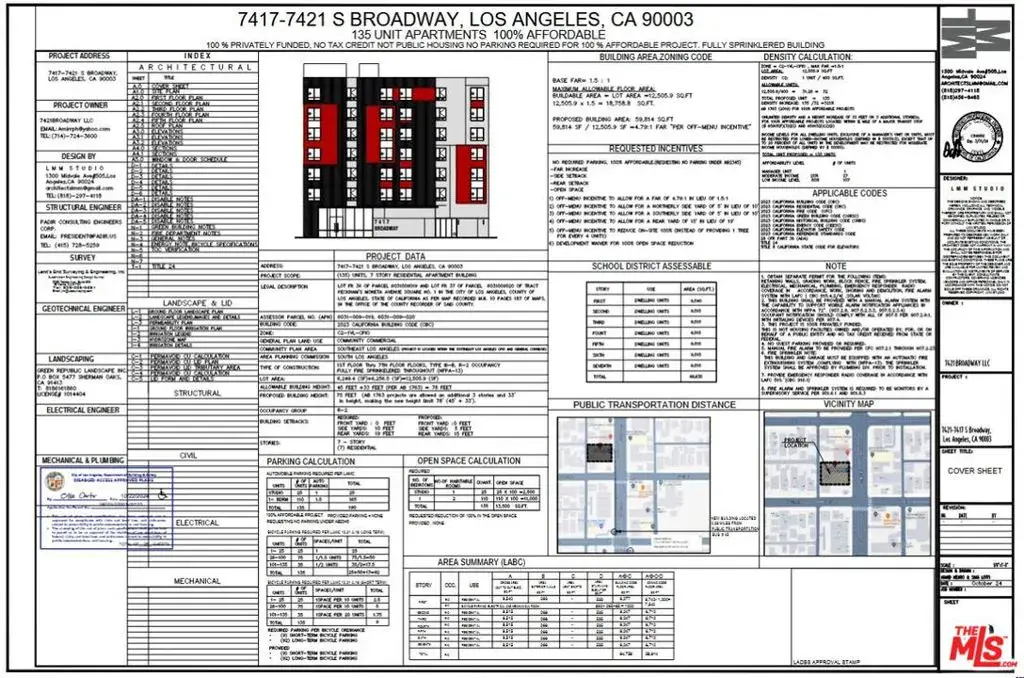 Fully entitled ED1 project for 134 affordable units. Size of the lot is 12,500SF and its zoning is LAC2-1VL-CPIO. Currently existing on the property is a 99 centers Happy Bargain Shop that is paying $4,400 a month and a can recycling center that is paying $1,750 per month. Both those tenants are on month to month leases. The ED1 project is fully entitled with an attractive unit mix of (110) 1 BR + 1 Baths & (25) studio units.