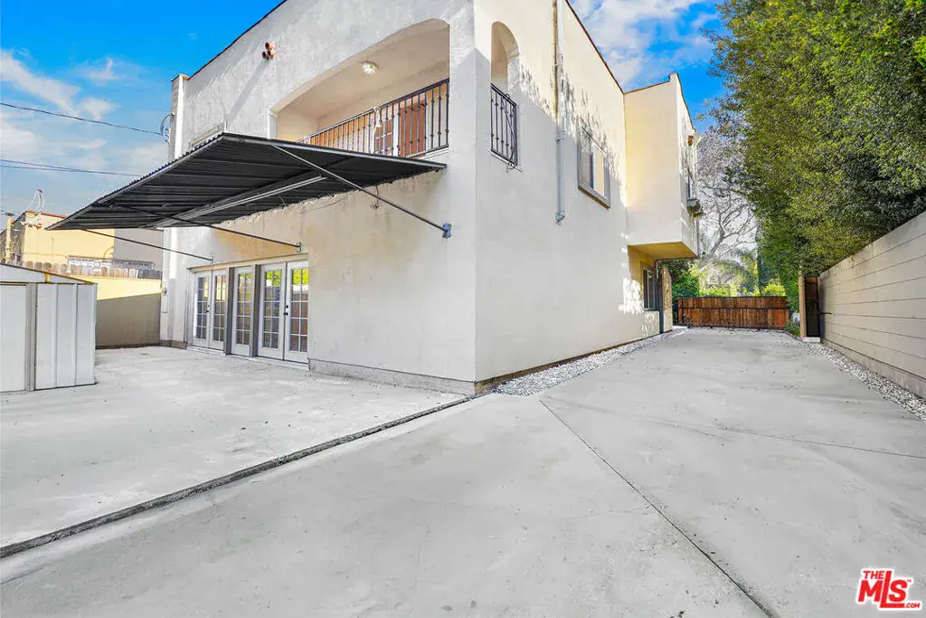Located within a fully gated and hedged compound, this unattached, two-story front house offers the perfect blend of privacy and Central LA conveniences, with access to Hancock Park, Larchmont Village, and West Hollywood. Thoughtfully updated for modern living, the residence features wood-style floors, central A/C, and a front garden. The flexible floor plan includes three bedrooms and a unique converted garage studio, perfect for a home office or creative den. The upper level serves as the heart of the home with a bright, open-concept living room, balcony, dining area, and kitchen. The lower level offers versatility, including a bedroom, full bath, and a spacious recreation room with kitchen facilities. Outside, enjoy seamless indoor-outdoor living in your exclusive, shaded front yard, a rarity in this area. With no shared walls and its own entrance, this home feels like a private single-family estate. Available for immediate move-in.