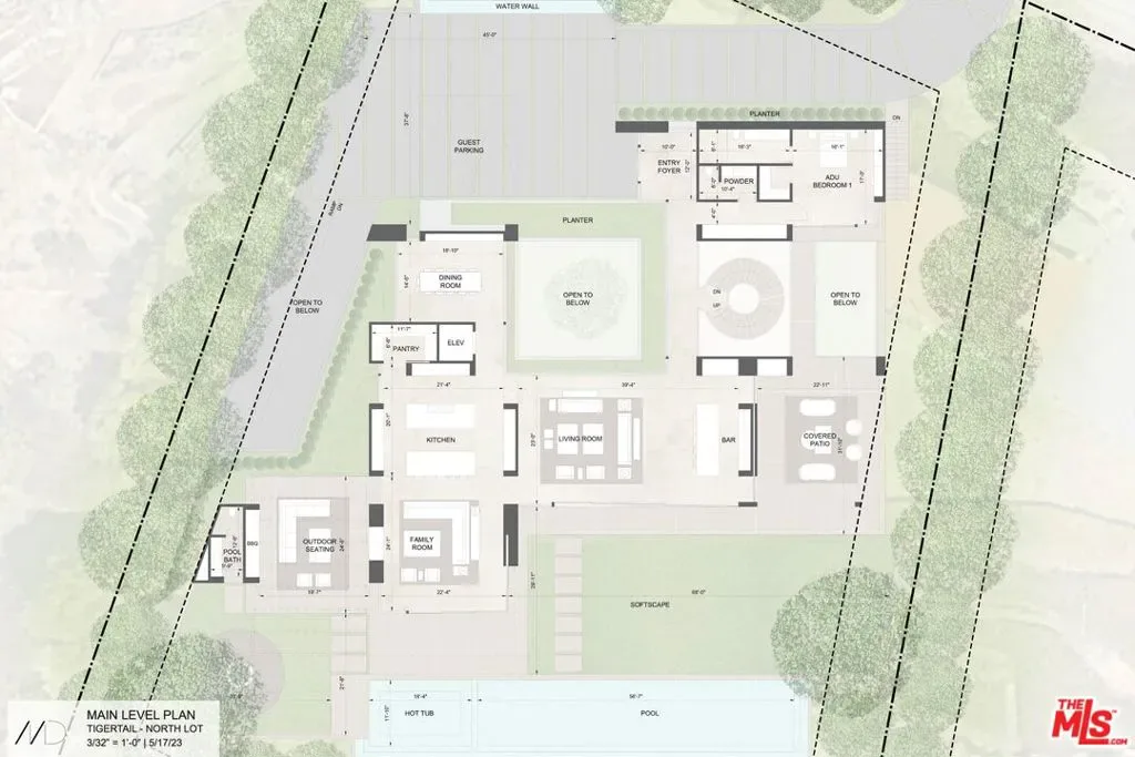 Perched in a prestigious Brentwood neighborhood, 747 North Tigertail Road presents an extraordinary opportunity to create a world-class estate in one of the Westside’s most sought-after neighborhoods. Set on an expansive 28,519 square foot lot (.65 AC), the property captures spectacular canyon and ocean views, offering a breathtaking backdrop for a future architectural masterpiece. The offering includes RTI plans, surveys, and a slope density analysis, providing a valuable head start for the next owner to begin building their dream home with confidence and efficiency. The approved plans envision a stunning contemporary residence designed to blur the lines between indoor and outdoor living, thoughtfully positioned to maximize the property’s sweeping vistas and natural, bluff-front surroundings. The proposed home would span an impressive 12,549 interior square feet across three expansive levels, featuring seven bedrooms and ten bathrooms, along with an array of luxury amenities including an infinity-edge pool and spa, fire pit, outdoor kitchen, rooftop deck, entertainment lounge with wet bar, screening room, gym, elevator, and a state-of-the-art wellness center. A luxurious primary wing serves as a private retreat, while the overall design prioritizes privacy, tranquility, and seamless flow for both everyday living and grand-scale entertaining. Located in a prime Brentwood enclave, the property is just moments from top-rated schools, The Getty, and the acclaimed dining and shopping along San Vicente Boulevard. With its rare scale, breathtaking views, and RTI Plans for an exceptional modern estate, 747 North Tigertail Road offers a remarkable opportunity to bring a visionary residence to life in one of Los Angeles’ most desirable communities.