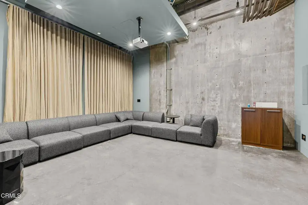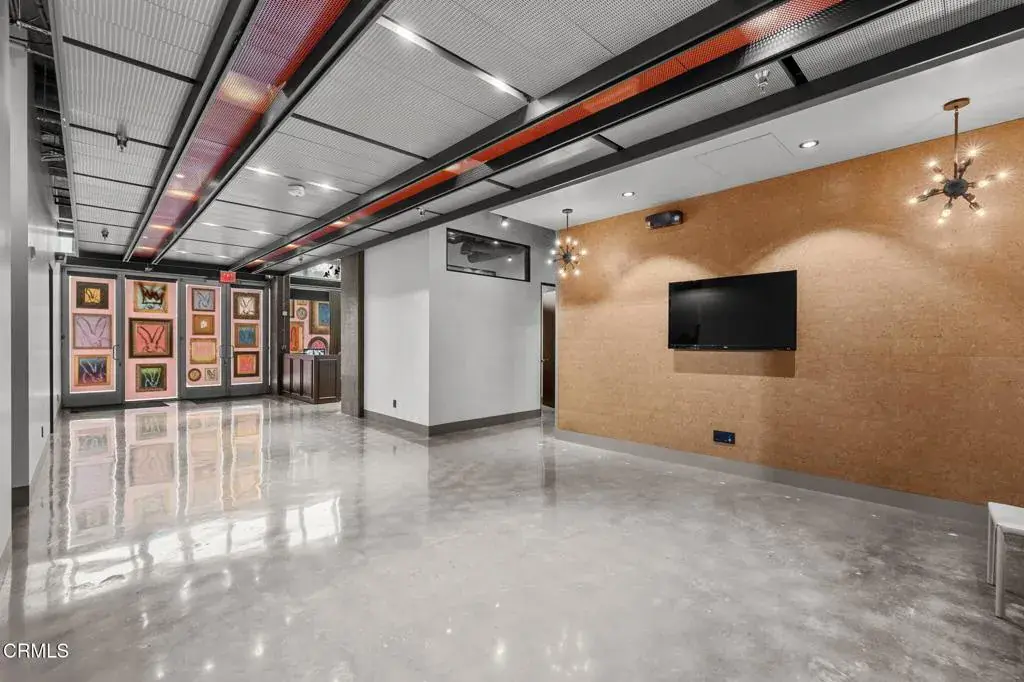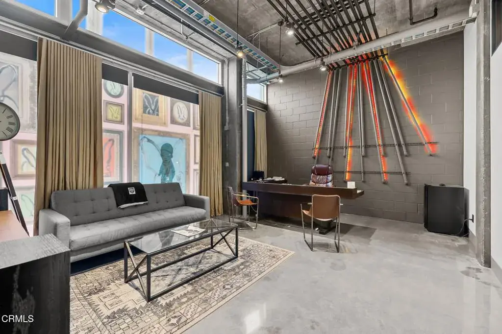 751 N. Fairfax Ave., Suite 102 is a rare ground-floor commercial condominium within the iconic Cherokee Studios Lofts. The property totals approximately 3,100 square feet, comprised of +/-2,410 square feet of ground-floor space and +/-700 square feet of high-ceiling storage, offering a highly flexible layout suitable for creative office, studio, production, showroom, retail, or food-and-beverage use (subject to approvals).The space is currently configured with a combination of private offices, open collaboration areas, kitchen, and media/theatre room, and features a modern industrial aesthetic with polished concrete floors, exposed concrete walls and ceilings, and dramatic ceiling heights. The unit benefits from approximately 80 feet of frontage along North Fairfax Avenue, providing strong visibility and branding potential while maintaining operational privacy when desired. Existing CAT-6 cabling and fiber-optic connectivity support media, technology, and data-intensive users.Per the CC&Rs, the condominium is legally divisible into multiple units, allowing for phased occupancy, future flexibility, or multiple use scenarios. Ownership includes access to a secure, gated covered parking garage with 8 assigned spaces, with the ability to stack for additional capacity, plus 2 reserved surface parking spaces. Tenants and owners also enjoy access to a shared rooftop deck via elevator, offering panoramic city views–an amenity rarely found in comparable ownership opportunities.