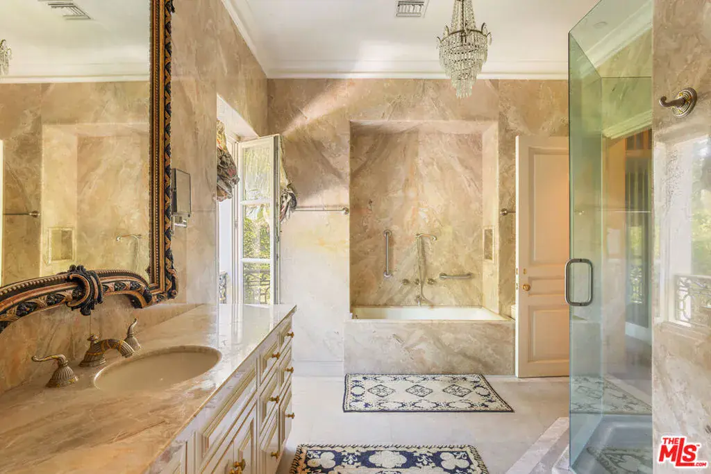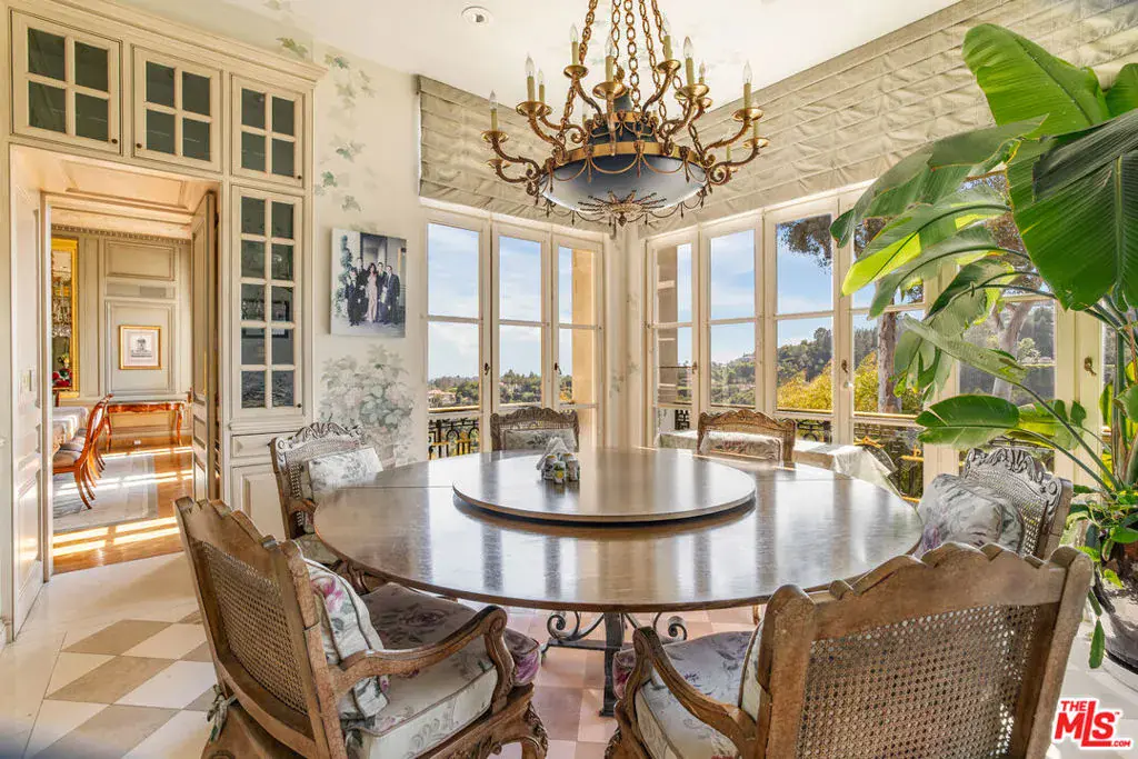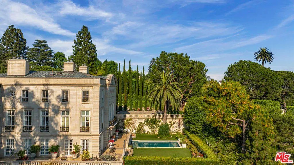 A Chateau in Bel Air where French refinement and architectural design meet Los Angeles city and ocean vistas and perfect for the upcoming Olympics! This magnificent estate was modeled after Le Petit Trianon in Versailles, France and offers lots of bedrooms and space for the discerning taste. The grand interior with double-height ceilings decorated with meticulously crafted moldings offers elegantly appointed formal living rooms. Just one floor below, informal quarters provide spaces to casually luxuriate after laps in the pristine pool under the California sun. And movie nights are sure to delight in the sumptuously comfortable home theater conveniently adjacent to the wine room. For those who love to entertain in grand style, this estate offers an approximately 10,000sf open air terrace complete with an outdoor kitchen, cabana room and city views. Offering 9 bedrooms and 12 bathrooms, including the guest house and maid’s quarters, this home presents a truly unique opportunity. One of the most distinctive features of this estate is the 22-car garage situated directly below the open-air terrace. Live elegantly and entertain in style with the Los Angeles skyline in the background while hosting all your favorite people under one roof. Grand in every detail (including the parking)!