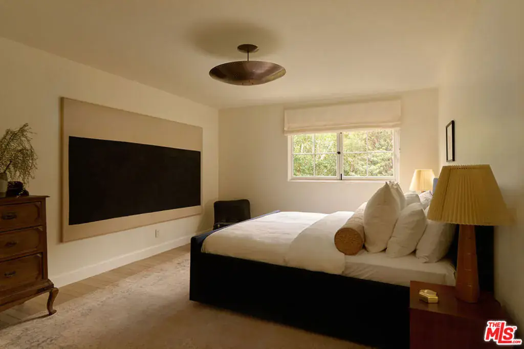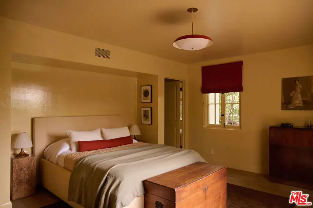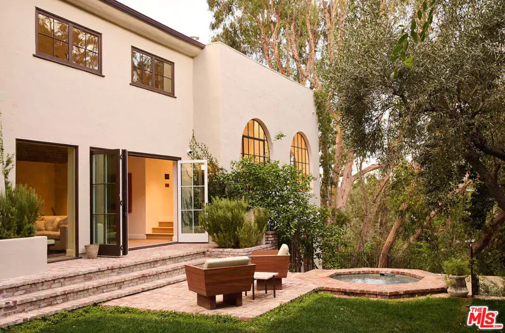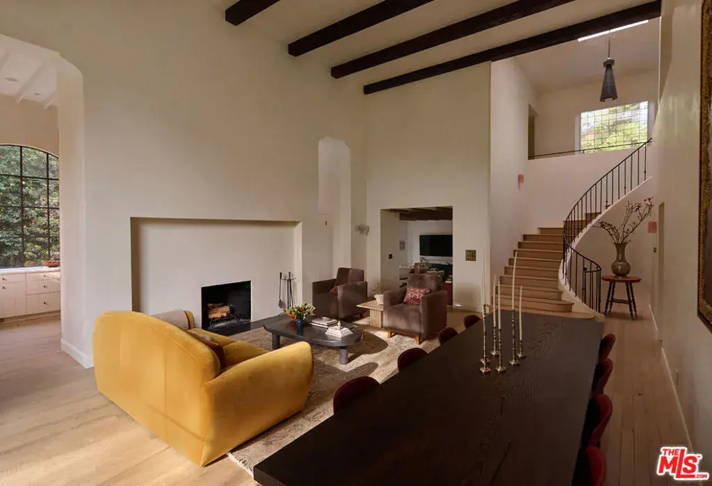 Nestled on a serene discreet street, this expansive Spanish estate embodies timeless elegance. Originally designed by architect Fred Smathers and exquisitely reimagined by Broad Project, the home seamlessly blends classical architecture with modern sophistication. Thoughtfully updated, this five-bedroom, five-bathroom residence is enveloped by lush, mature landscaping, including stately olive, citrus, and eucalyptus trees. A shimmering pool and spa, multiple outdoor living areas, and an exceptional floor plan create a truly idyllic retreat. Stepping through the foyer, you are welcomed by stunning European oak floors that set the tone for the home’s refined aesthetic. The soaring living room ceilings enhance its sense of grandeur, while a large picture window bathes the space in dappled natural light. A striking fireplace, framed by Roman clay walls, serves as a focal point, complemented by bespoke built-in cabinetry and Fortuny lighting. The kitchen is a true masterpiece, featuring arched steel windows, a coveted Lacanche range, and a meticulously crafted solid oak island. Designed for both beauty and function, it flows seamlessly into the informal living room, where French bifold doors open to an expansive outdoor sanctuary ideal for effortless indoor-outdoor living. The primary suite is a private haven of impeccable design, with French doors leading to a secluded patio. Its spa-like ensuite bath is adorned with old-growth walnut built-ins, a luxurious soaking tub, a walk-in steam shower, and a generous walk-in closet. Two additional bedroom suites each offer elegantly appointed baths and spacious walk-in closets. Adjacent to the pool, a separate living space with a bar provides exceptional versatility for entertaining. Complete with a sauna and cold plunge, it serves as a refined wellness retreat, perfectly suited as a home gym, office, or guest quarters. An exceptional property of beauty, tranquility, and understated luxury, offering warmth, privacy, and an unparalleled living experience.