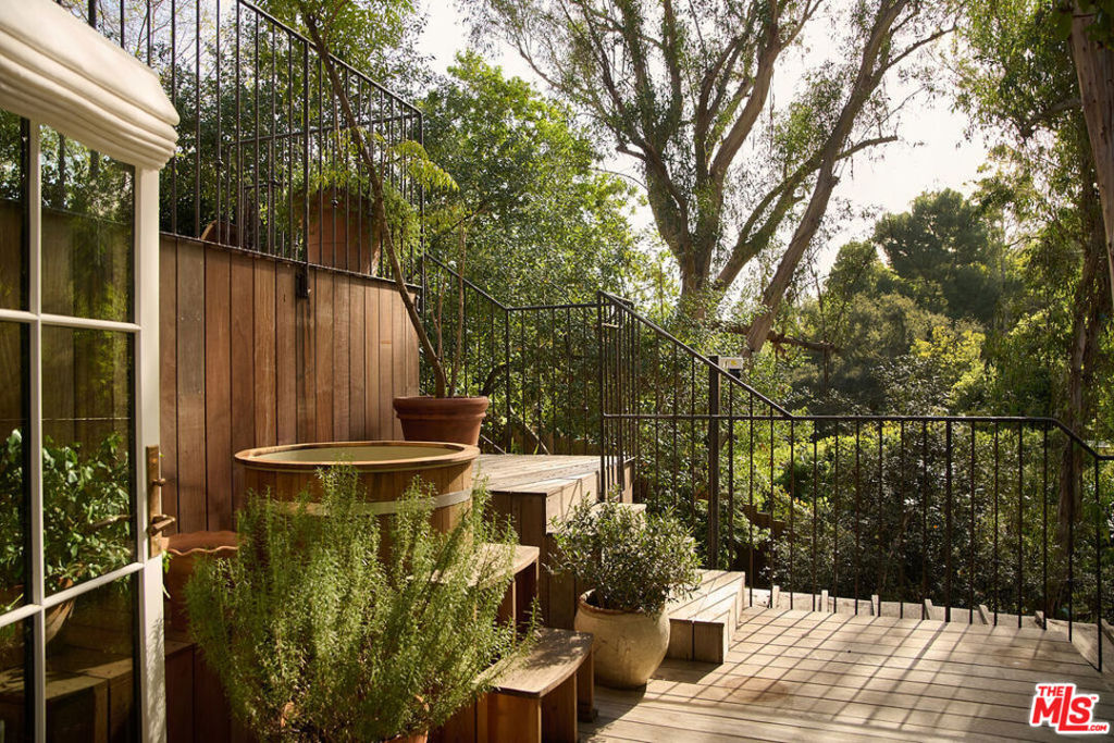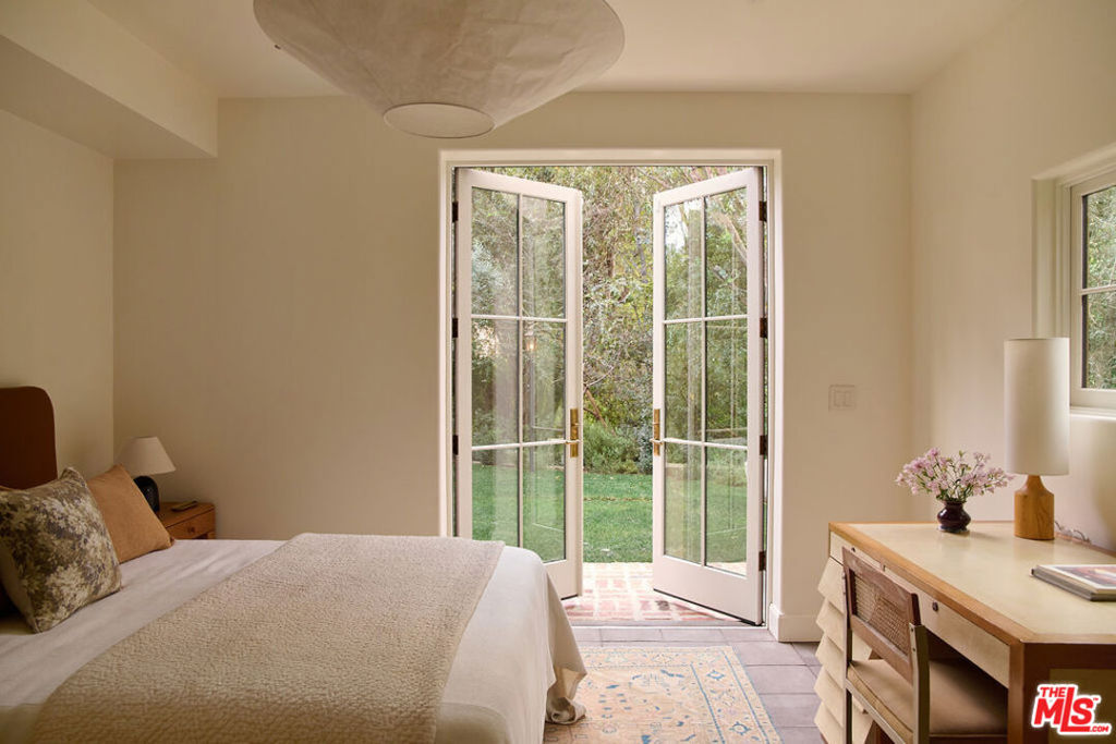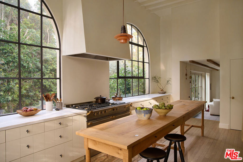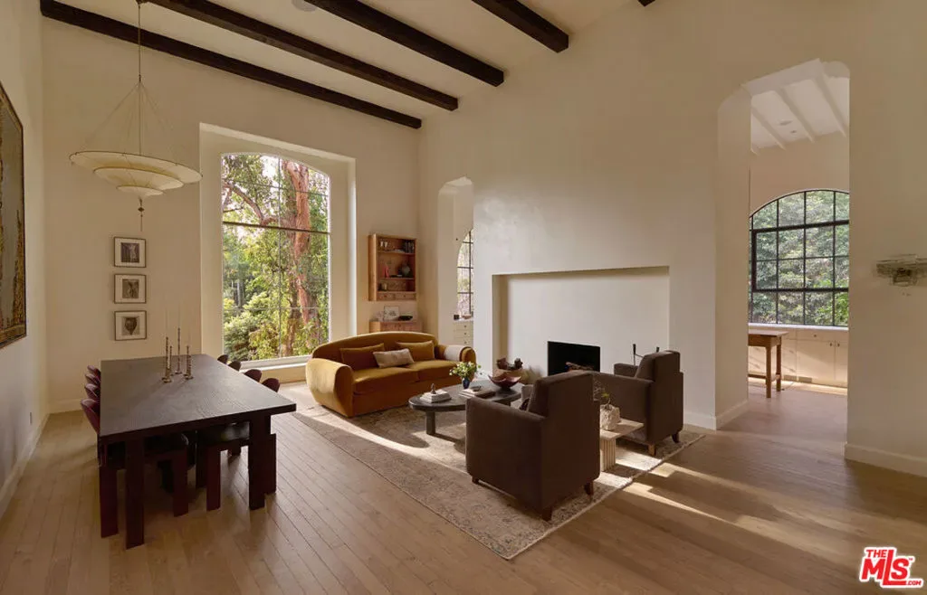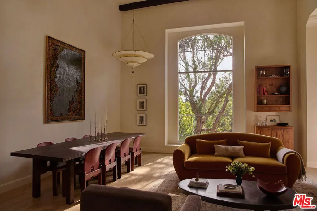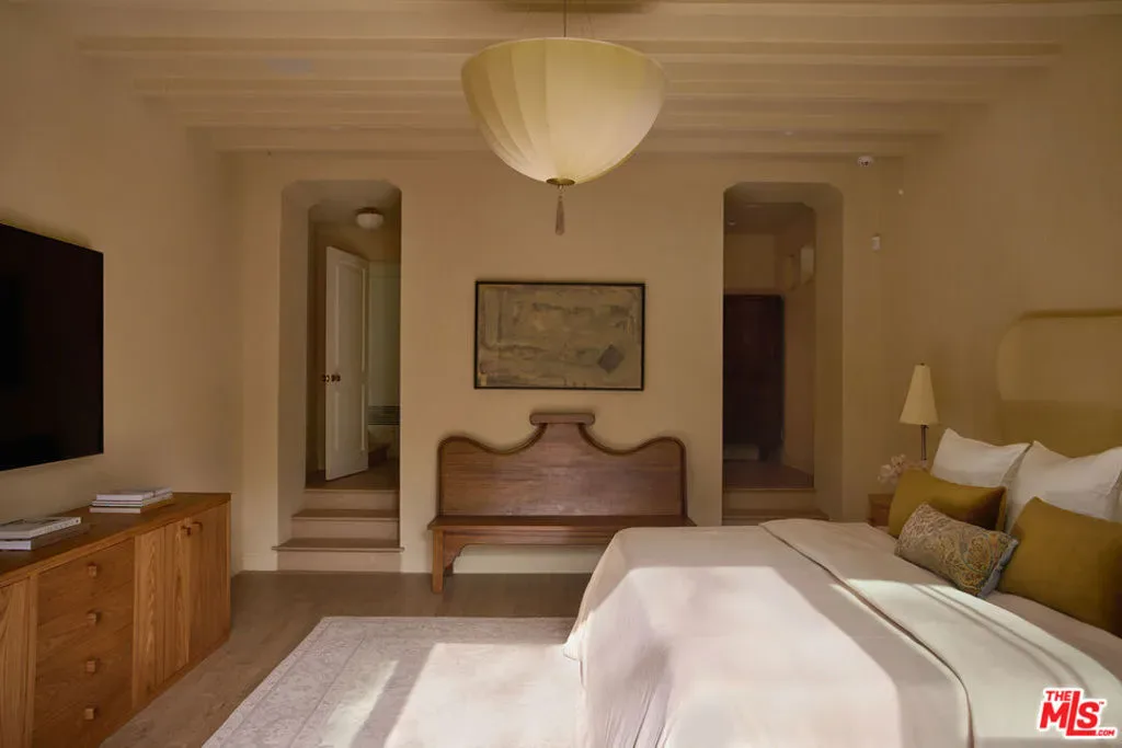 Nestled on a serene discreet street, this expansive Spanish estate embodies timeless elegance. Originally designed by Fred Smathers and exquisitely reimagined by Broad Project, the home seamlessly blends classical architecture with modern sophistication. Thoughtfully updated, this five-bedroom, five-bathroom residence is enveloped by lush, mature landscaping, including stately olive, citrus, and eucalyptus trees. A shimmering pool and spa, multiple outdoor living areas, and an exceptional floor plan create a truly idyllic retreat. Stepping through the foyer, you are welcomed by stunning European oak floors that set the tone for the home’s refined aesthetic. The soaring living room ceilings enhance its sense of grandeur, while a large picture window bathes the space in dappled natural light. A striking fireplace, framed by Roman clay walls, serves as a focal point, complemented by bespoke built-in cabinetry and Fortuny lighting. The kitchen is a true masterpiece, featuring arched steel windows, a coveted Lacanche range, and a meticulously crafted solid oak island. Designed for both beauty and function, it flows seamlessly into the informal living room, where French bifold doors open to an expansive outdoor sanctuary ideal for effortless indoor-outdoor living. The primary suite is a private haven of impeccable design, with French doors leading to a secluded patio. Its spa-like ensuite bath is adorned with old-growth walnut built-ins, a luxurious soaking tub, a walk-in steam shower, and a generous walk-in closet. Two additional bedroom suites each offer elegantly appointed baths and spacious walk-in closets. Adjacent to the pool, a separate living space with a bar provides exceptional versatility for entertaining. Complete with a sauna and cold plunge, it serves as a refined wellness retreat, perfectly suited as a home gym, office, or guest quarters. An exceptional property of beauty, tranquility, and understated luxury, offering warmth, privacy, and an unparalleled living experience.