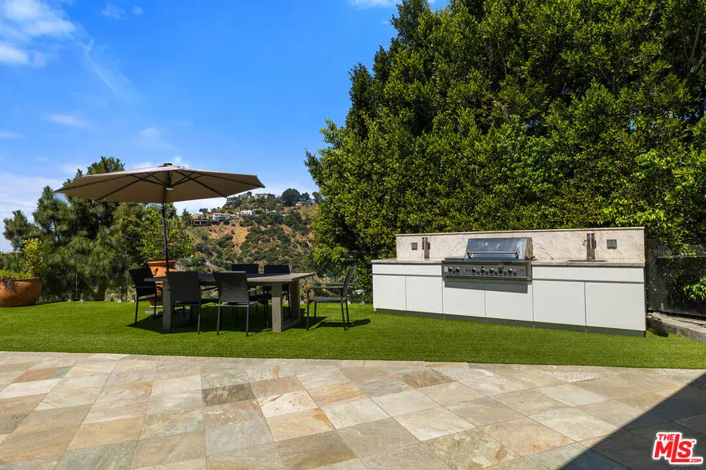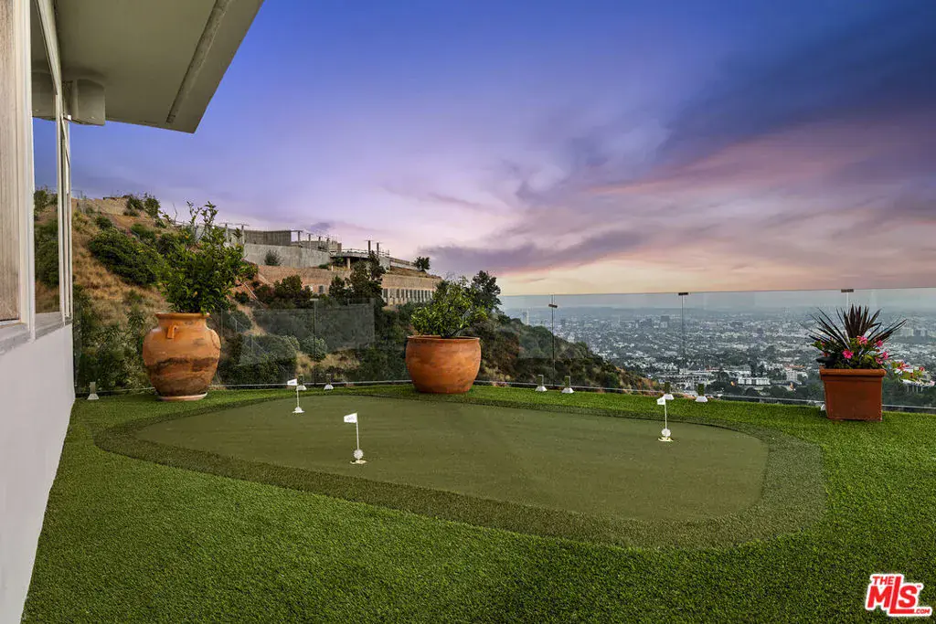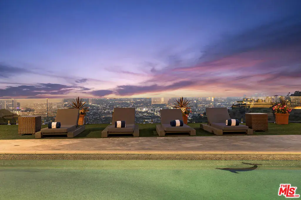 Situated in the Hollywood Hills above the Sunset Strip, this furnished contemporary single-level home captures unobstructed panoramic views from the city to the ocean. Built in 1982 and thoughtfully updated in 2023, the 6,259 sq ft residence exudes modern elegance with luxurious finishes throughout. The home features an updated chef’s kitchen, four en-suite bedrooms, a gym, home office & formal living and dining rooms. An open-concept floor plan seamlessly connects the living, dining & kitchen areas, creating a spacious & inviting environment. The interiors are tastefully furnished with sleek lines, refined decor & premium materials, embodying true contemporary luxury. Expansive glass sliding doors open to a stunning outdoor oasis. A sparkling pool invites you to unwind while taking in sweeping views of the city & Hollywood Hills. Lounge poolside, bask in the California sun, enjoy alfresco dining, or perfect your putt on the private greenthe outdoor space is designed for relaxation & entertaining. Each en-suite bedroom is thoughtfully appointed with plush bedding & natural light, offering restful comfort. The primary suite features a generous sitting area, custom built-ins, dual walk-in closets & a spa-like travertine bath with a soaking tub, steam shower & sauna. Located in the coveted Mount Olympus community, this home offers privacy & tranquility while being just minutes from the world-class dining, shopping & entertainment of West Hollywood and Beverly Hills.