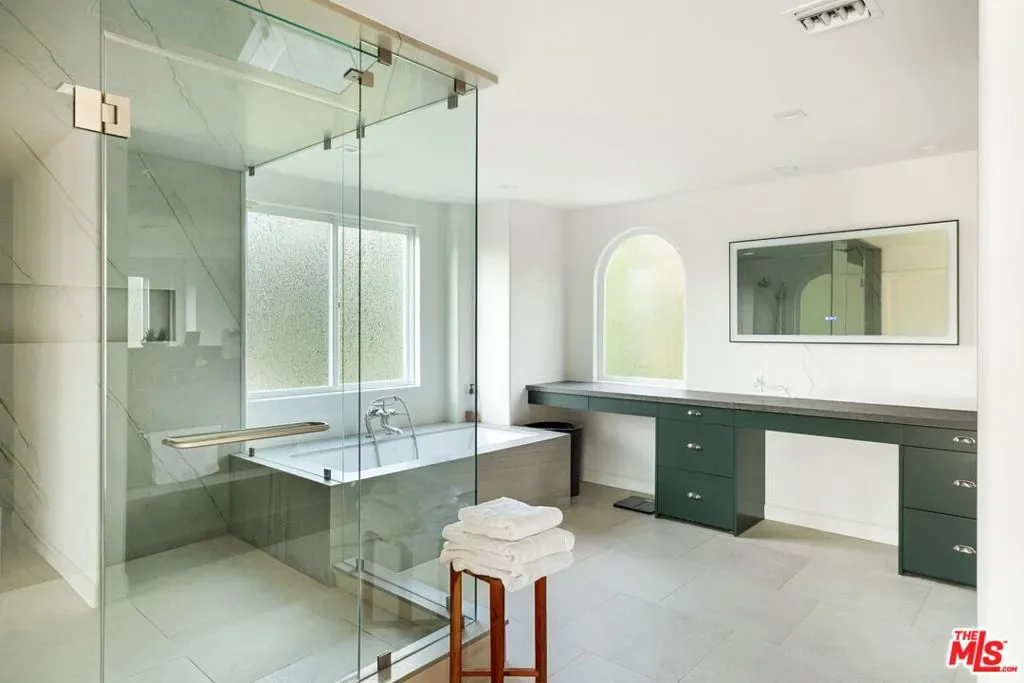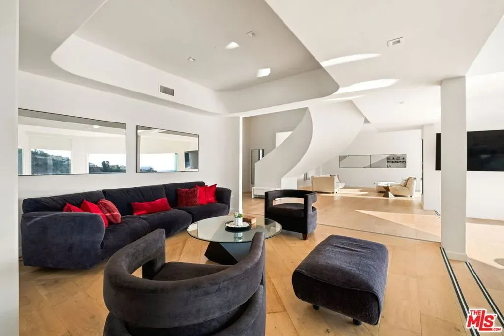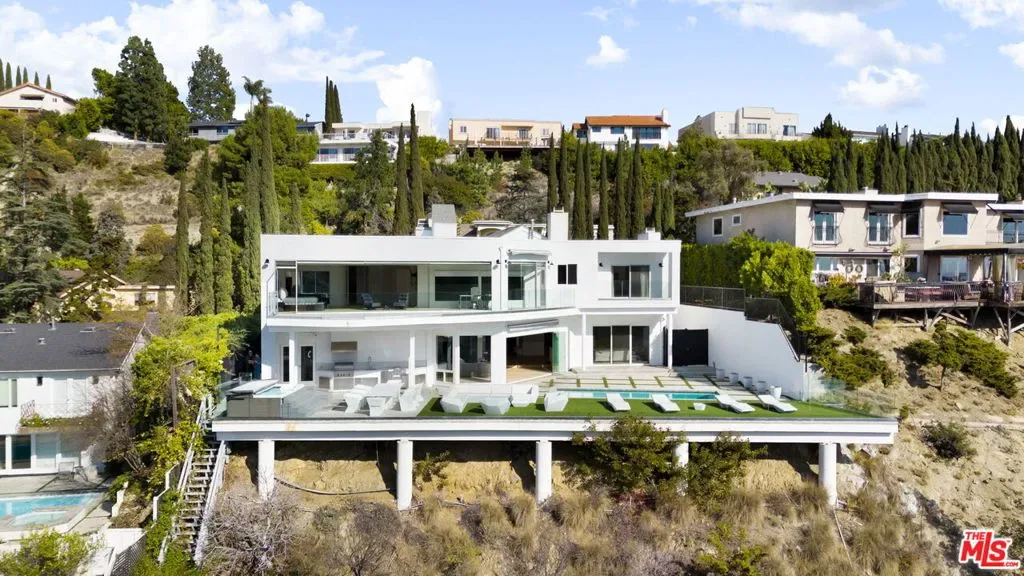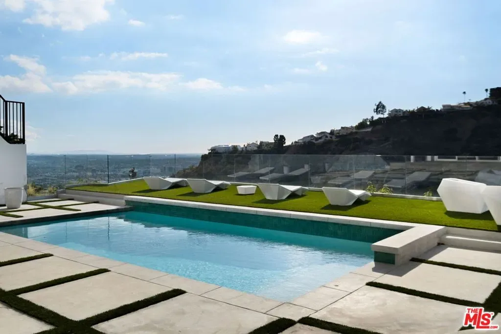 A stunning contemporary, perched atop the city with panoramic views to the ocean. Quietly sited in Mt. Olympus, but only a moment from the Sunset strip and all the city has to offer. Public rooms on the ground level that open out to the pool with western exposure that baths the house in light throughout the day and offers unmatched sunsets. A primary suite with a wall of windows that frame the Hollywood Hills and the city below, and an ensuite bathroom with 2 walk in closets, a steam shower and soaking tub. In total 3 ensuite bedrooms upstairs, and a 4th bedroom/office on the ground level. Perfect for entertaining; easy access and the rarity of ample parking in hills – all located in the heart of the city. This is consummate Indoor-outdoor living at its finest – privacy and proximity – the best of life in LA.