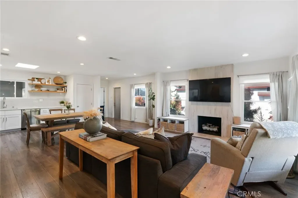 Upgraded modern single level home on a desirable corner lot in prime Westchester. Filled with natural light, this inviting residence features hardwood floors, skylights, recessed lighting, air conditioning, and a cozy fireplace.