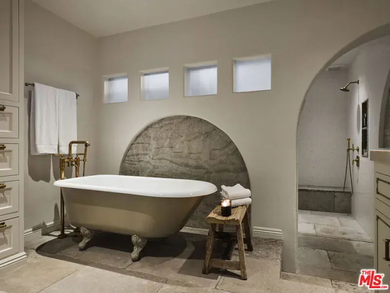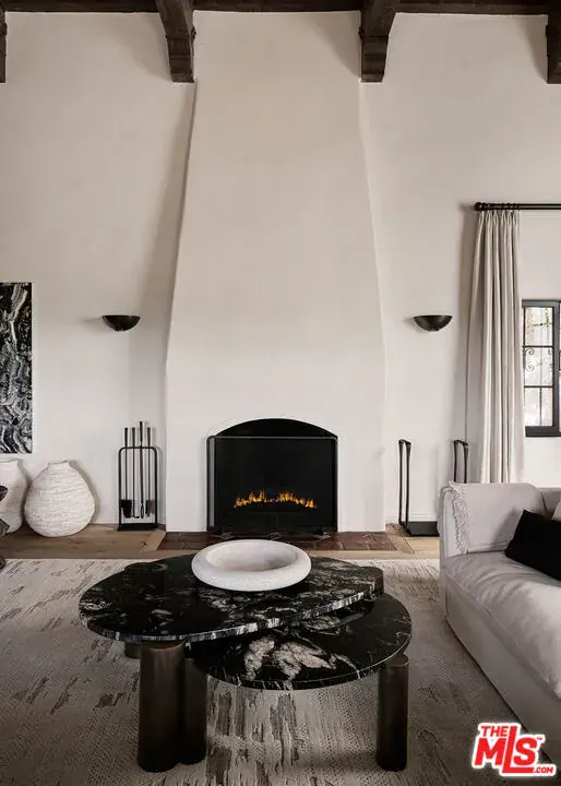 Behind wooden gates in the Hollywood Hills, a reimagined 1920s Spanish residence unfolds with remarkable privacy, architectural integrity, and a city panorama that stretches endlessly beyond its walls. Thoughtfully remodeled by designer Hilary Madigan, the home honors its original character while introducing a level of finish and technology rarely found in historic properties. At the heart of the main level, a dramatic living room is framed by a double-height vaulted ceiling and exposed beams, anchored by a wood-burning fireplace. Arched plaster openings and original tile underfoot guide the natural flow into a formal dining room where French doors open to uninterrupted city views, offering a moment that feels both expansive and intimate.The kitchen is a study in quiet luxury, centered around a La Cornue range and Waterworks fixtures, with integrated Meile appliances and warm, reclaimed wood flooring grounding the space. Throughout the home, the lighting and AV systems have been fully upgraded, with a complete Savant integration for home automation, audio, and visual controlspaired with Lutron Homeworks lighting and a nine-camera security system via Verkada, delivering seamless control and peace of mind. Every bathroom has been redesigned with intention and restraint, outfitted with Waterworks fittings and Toto toilets, continuing the home’s throughline of elevated functionality.A sweeping staircase leads to the home’s lower level where all three bedrooms are thoughtfully placed. The primary suite, with dual Juliet balconies, includes a custom walk-in closet and dressing area that opens into a tranquil, spa-inspired bath. Two additional bedrooms each offer en-suite baths and bespoke storage. The former basement has been converted into a refined flex spaceideal for a gym, home office, or studio. Designed for effortless indoor-outdoor living, the property invites connection to the surrounding landscape from both levels, while modern systems such as a new HVAC, tankless boiler, and EV-charging-equipped garage ensure contemporary comfort throughout. Offered optionally furnished, and reflecting over $2 million in renovations, this is a home that captures the essence of Old Hollywood while delivering a lifestyle firmly rooted in the present.