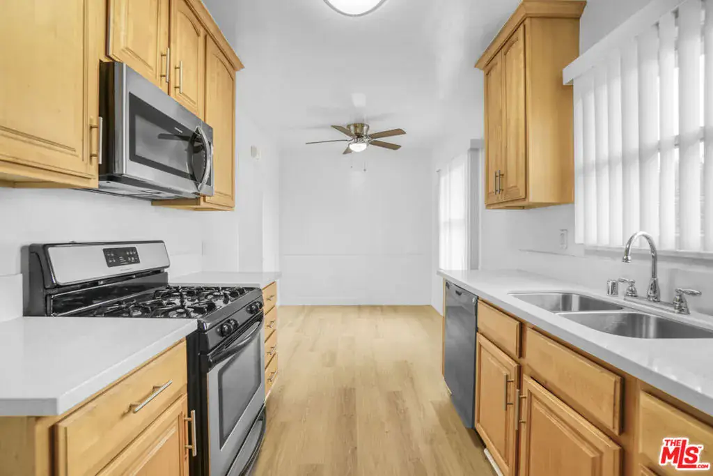 7933 Alverstone Avenue is a well-built 10-unit apartment building typical of the mid-century construction that defines Westchester, one of Los Angeles’s most sought-after neighborhoods near LAX. Built in 1953, this two-story property has been updated to current market standards while maintaining its classic charm. The building offers a desirable mix of six spacious 1-bedroom/1-bath units and four 2-bedroom/1-bath units. Select units feature light wood flooring, bright white walls, ceiling fans, and large windows providing abundant natural light. The updated kitchens showcase warm wood cabinetry, modern appliances including gas ranges and built-in microwaves, and clean contemporary finishes. The property sits on an oversized 14,124 SF lot with mature landscaping, a well-maintained lawn, and tropical palm trees creating an inviting California aesthetic. The large covered carport at the rear of the property provides ample parking and presents potential for future ADU development.