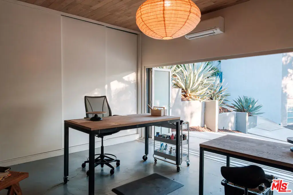 Perched above iconic Laurel Canyon and just moments from the Sunset Strip, this luminous mid-century modern flows effortlessly indoors and out for ultimate Hollywood Hills living. A chef’s Viking kitchen with custom cabinetry and a bold island opens to a glass-walled living room crowned by nine skylights and a dramatic fireplace. Natural stone and wood floors lead to three bedrooms and two luxe baths, including a sun drenched primary suite that boasts a walk-in closet, spa bath, fireplace, and French doors opening to the resort-style outdoor living space. Saltwater pool, fountains, fire-pit, bar, outdoor shower, and multiple lounge/dining areas set the scene. The garage has been transformed into a sleek 300 SF art studio. The driveway and a private street space offer parking for 5 cars. Perfectly blending privacy and proximity, this elevated retreat offers an ideal balance of tranquility and city convenience. Whether entertaining beneath the stars or enjoying quiet mornings with canyon views, every moment here feels distinctly cinematic. Thoughtfully updated, yet true to its mid-century roots, this home captures the essence of Southern California living — bright, open, and effortlessly sophisticated.