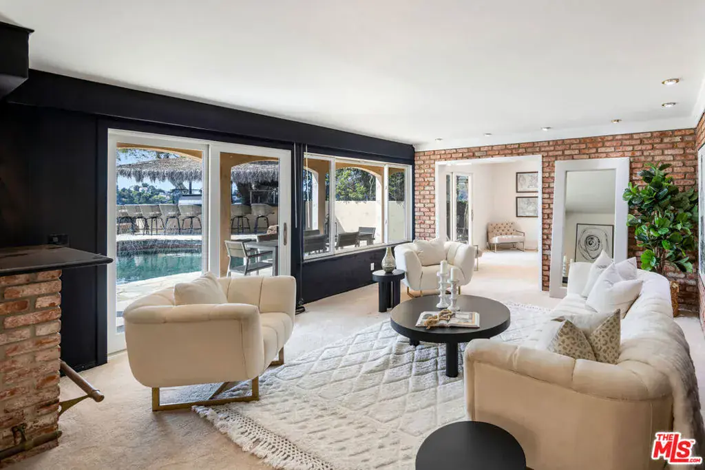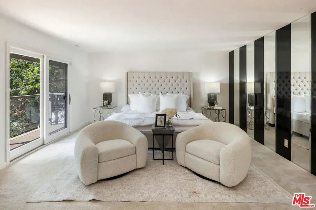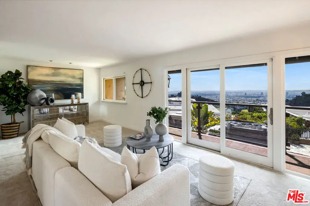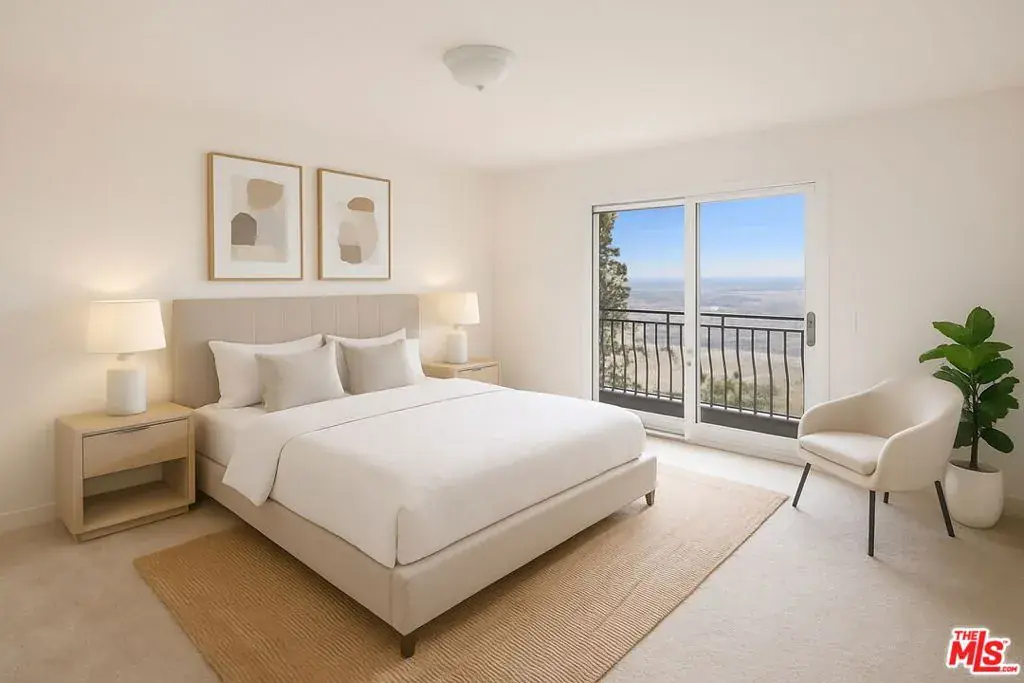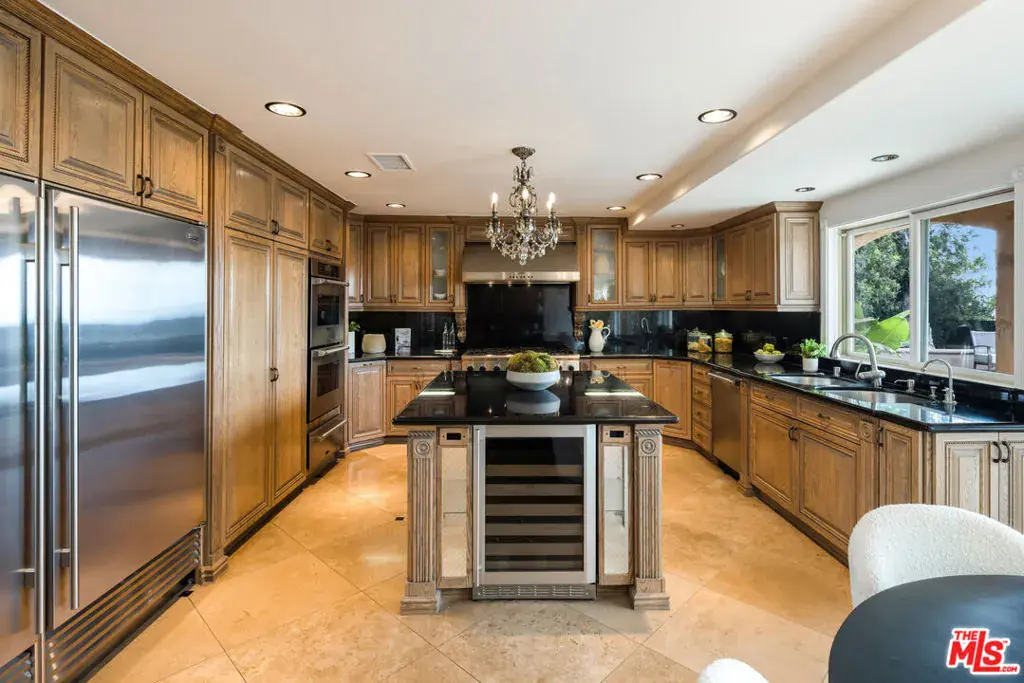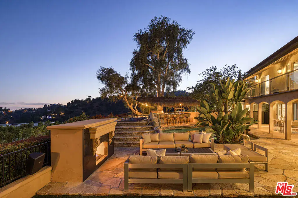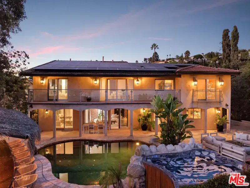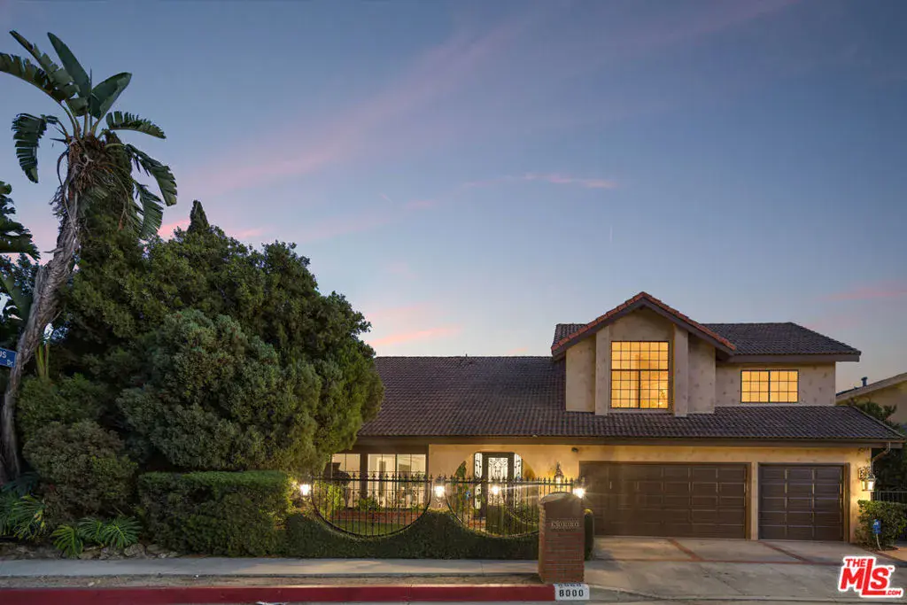 Welcome to 8000 Oceanus, an exquisite residence in the prestigious Mount Olympus enclave with breathtaking cityscape views. Positioned on a coveted corner lot, this nearly 4,000-square-foot home is filled with stunning custom details.Step into a dramatic formal entry featuring soaring cathedral ceilings, elegant chandeliers, and an impressive Onyx stone fireplace stretching from floor to ceiling. Entertain guests in the formal dining room under a dazzling crystal chandelier or ascend the custom wrought-iron staircase to the upper level.The gourmet kitchen is a chef’s dream, equipped with top-of-the-line appliances including a Sub-Zero refrigerator, Thermador double oven, 6-burner cooktop with griddle, two warming drawers, granite countertops, and an oversized island with abundant storage and a wine fridge.The luxurious primary suite offers a private sanctuary with a spa-inspired en suite bath, jetted Jacuzzi tub, dual sinks, and two spacious walk-in closets. Step onto your own balcony to enjoy serene views of Downtown L.A. A second staircase off the den leads to a separate private suite, ideal for guests.With a three-car garage plus additional driveway parking, there’s room for six vehicles. Outdoors, the meticulously landscaped backyard is perfect for both entertaining and relaxation, offering endless possibilities for gatherings or quiet evenings under the stars. Experience unforgettable sunrises and sunsets while enjoying the best of Mount Olympus living at 8000 Oceanus.