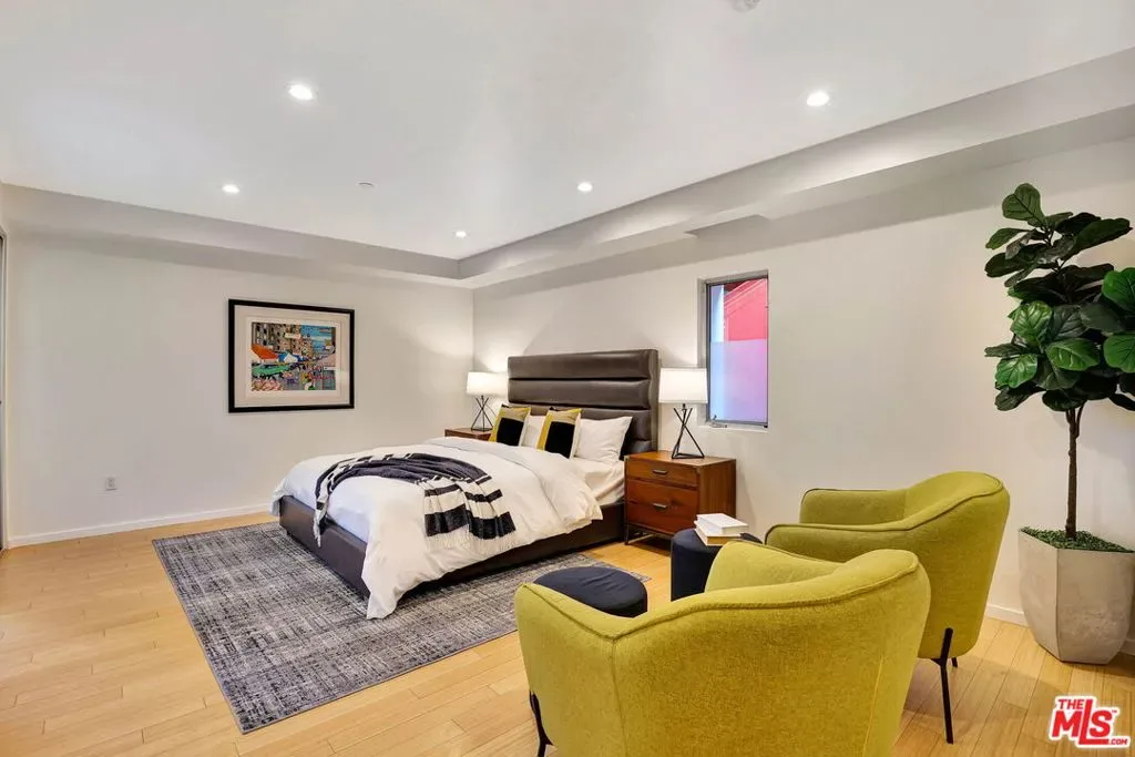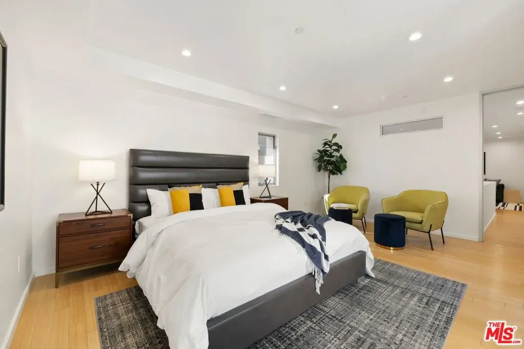 Located in the heart of Hollywood, Loft #7 is part of the architecturally celebrated Wilcox Avenue Lofts, imagined by acclaimed architect Lorcan O’Herlihy. Known for his bold, urban-forward residential design, O’Herlihy dazzled all of Hollywood at the “WA Lofts” with a double gated outdoor courtyard entry, two buildings separated by a common area flooded with light, and a series of 14 industrial-strength units, all defined by volume, exposure, and flow. Loft #7 is a dramatic two-level residence with a layout that maximizes both scale and flexibility. The ground-floor level features an expansive open living, dining, and kitchen space with soaring ceilings, oversized industrial windows, and polished concrete floors. The kitchen offers generous counter space and storage, flowing seamlessly into the entertaining areas, while a conveniently located powder room enhances functionality for guests. Upstairs, a large bedroom suite provides privacy and separation, complete with ample closet space and a well-appointed bathroom. It also has a covered balcony. Adjacent to the suite is a substantial bonus area ideal for a home office, media lounge, secondary living space, or creative studio. The upper level maintains an open loft sensibility while offering defined zones for work and retreat. In-unit laundry is also here. Additional features high-end tile in both bathrooms, kitchen island, and all-new LED lighting. Freshly-painted top-to-bottom. Secure entry and 2 assigned side-by-side parking spaces complement the residence’s design-forward appeal. Underground guest parking is also available on a first-come first-serve basis. Close by are major studios, Netflix, Paramount, and the dining and nightlife corridors that define central Hollywood. Loft #7 delivers architect-driven design and flexible living in one of Los Angeles’ most dynamic neighborhoods. HOA dues are $785/mo. and include earthquake insurance.