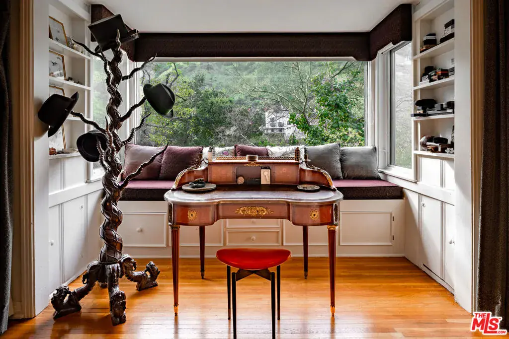Standing guard over a private enclave of Mt Olympus, this 1926 Spanish storybook should best be described as a romantic love affair with life. Born in an era when silents were turning into talkies, this is the home that will write your next chapter and allow your inspiration to flow. Rich with rockstar history and filled with classical elements like wood-beamed cathedral ceilings, stained glass windows, a mantled fireplace, a fabulous octagon shaped library, lush greenery yards and outdoor dining areas with balconies on every level of the house. The kitchen, made to inspire your culinary efforts, connects to a formal dining room with an ambiance to entertain, fulfilling every expectation of a perfect night at home with friends. Cross the lovers bridge and you know, you’ve found your place to come home to.
