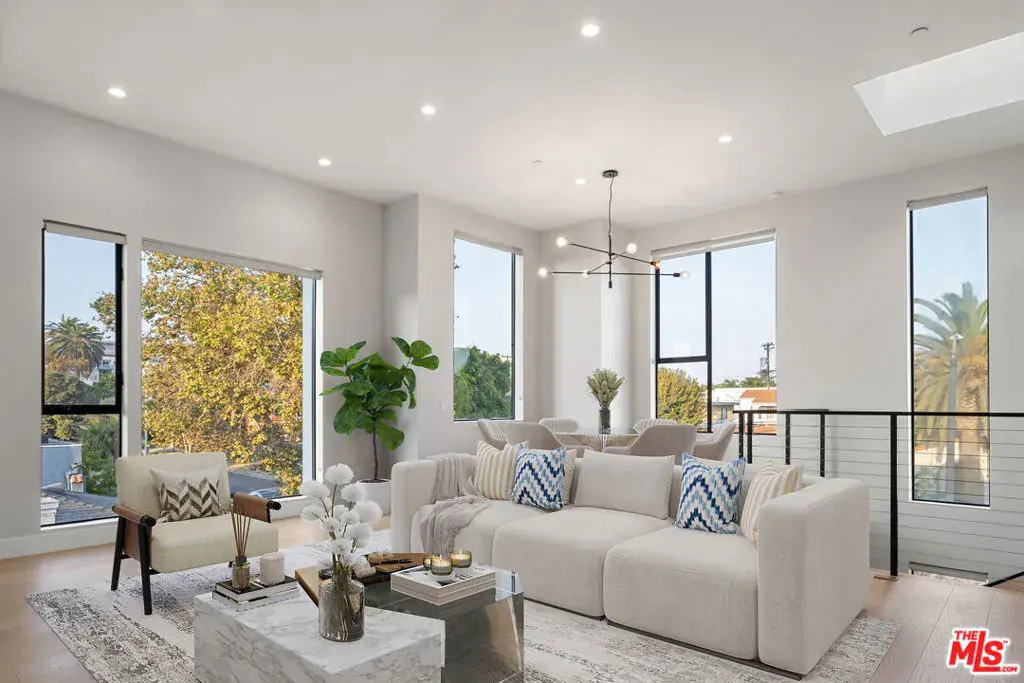 Welcome to the The Detroit Collection, an intimate assemblage of 4 architectural Single-Family Homes. This beautiful front facing home is equipped with high-end designer finishes, hardwood flooring, marble fireplace, and abundant natural light throughout. The incredible cook’s kitchen features German-Import Leicht Cabinetry, huge eat-in breakfast bar, room for a large wine fridge or built-in pantry and dumbwaiter. The kitchen opens to a separate dining area and spacious living room with large windows – perfect for soaking up the SoCal sun and mountain views. Incredible open spaces and volume – designed meticulously to entertain on a grand scale. Enjoy dining al fresco on the private rooftop deck & enjoy the incredible 360 views of the city. Huge laundry room and storage area. A symphony of style this new to market modern masterpiece is an unparalleled experience.