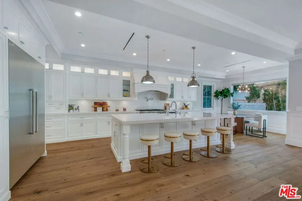 Sophistication and luxury is exemplified throughout this meticulously designed newly constructed Traditional style 6 bedroom 6.5 bathroom organic estate located in the highly desirable Beverly Grove. Offering impeccable craftsmanship and exceptional amenities, this ultra-private home boasts wide plank oak floors, 3 fireplaces, coffered ceilings, and custom curated finishes. The master suite features double entry doors, high-pitched ceilings, dual walk-in closets, fireplace, and a luxurious spa inspired bathroom. The chefs kitchen is dressed with brilliant white porcelain counter tops, a large center island, top of the line appliances and a butlers pantry. Desirable kitchen and family room combo flow seamlessly into the spacious sun filled backyard equipped with a bbq, pool and spa. Complete with smart home integrated home automation, state-of-the-art infrared security and fully solar powered this graceful, ultra private home is the perfect blend of traditional elegance with modern amenities.