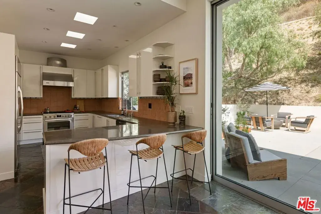 Welcome to this Mid-Century Modern private, gated and beautifully remodeled home. An oasis perfect for entertaining your most discern guests. Located in a nice, quiet and peaceful cul-de-sac tucked away in the serenity of nature. This home is light and bright with an open concept floor plan perfect for indoor and outdoor living with backside floor to ceiling sliding glass doors. You will love the gourmet Euro-style kitchen including Viking appliances, granite counters, and beautiful modern cabinetry. A choice to have a sunken dining room area or formal living room. Spacious primary suite with plenty of closet space, bathtub and separate shower. Two additional en-suite guest bedrooms, one of which is perfect for your home office. A vintage mid-century modern freestanding fireplace accentuates your family room venting through the ceiling in dramatic fashion. Your private backyard retreat with pool, spa, space for barbeque set up and multiple seating areas is perfect for outdoor parties. Beautiful hardwood and tiled floors, central air, and two-car garage with direct entry. This home offers elegance with comfort at every turn. Close proximity to groceries, restaurants, shops and entertainment on both sides of Mulholland Drive. A few minutes to Carpenter Charter Elementary School. Come live the dream.