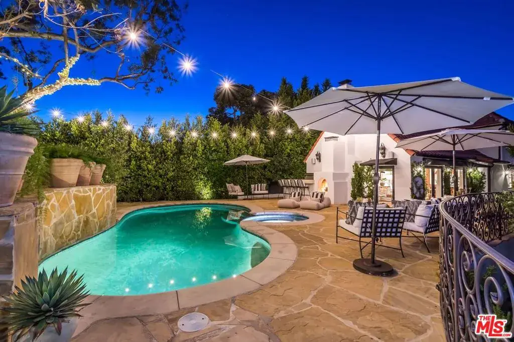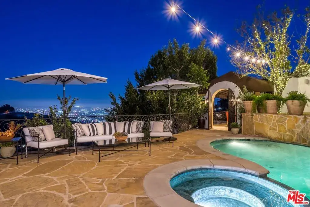A must-see Hollywood Hills Hideaway | Unmatched Privacy, Safety + Explosive Views. At the very end of a private promontory sits this romantic Mediterranean estate, a rare jewel where timeless elegance meets modern luxury. No expense was spared in creating this fully custom home with Waterworks fixtures, hand selected walnut hardwood floors, artisan tilework, and bespoke cabinetry throughout. For the health conscious, the home is comprised of all natural materials along with a whole house water filter (Aquasana) and a whole house filtered HVAC system (IQ Air). A drinking water filtration system was also installed in the kitchen. The chef’s kitchen features Viking appliances, Liebherr refrigerator seamlessly integrated with the cabinetry for a sleek built-in aesthetic, opening to dramatic indoor-outdoor living spaces perfect for entertaining. Celebrity approved with a state-of-the-art security system and rolling tamper-proof, bullet-resistant shutters, this property offers true peace of mind. The open layout flows to multiple expansive terraces, a sparkling pool, bubbling fountains, fire pit, cabana, and two additional outdoor fireplaces, all framed by sweeping, romantic views of the city. Rare direct access to your three-car garage, Sonos-powered surround sound, and fully connected smart home systems for lighting, cameras, and security all easily controlled from your phone make for easy secure living. Set on a large private lot with endless possibilities, this home isn’t just a place to live, it’s a lifestyle. Video: https://vimeo.com/1131091578/a379a412aa?fl=pl&fe=sh