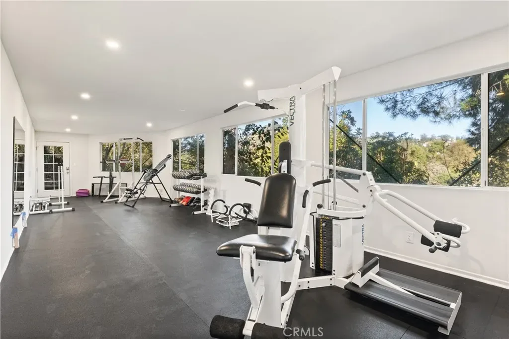 Tucked away at the end of a quiet cul-de-sac in Laurel Canyon, this gated Hollywood Hills retreat is situated on a sprawling hillside lot that offers dramatic canyon views. Enter through grand double doors into a warm, light-filled interior, where a spacious living room flows seamlessly into a bright sunroom framed by floor-to-ceiling walls of glass. The chef’s kitchen is a dream for anyone who loves to cook or entertain, beautifully appointed with top-of-the-line appliances and an oversized island. Adjacent, the formal dining room provides the perfect setting for casual meals or lavish dinner parties. Head upstairs to find three generously sized bedrooms, along with a wood-paneled office. The primary suite is a true sanctuary, featuring its own private patio, an inviting sitting area, custom walk-in closet and sumptuous bathroom, complete with a jetted tub, oversized shower, bidet, double vanity and separate makeup vanity. Step outside to the serene backyard oasis, where you can lounge by the sparkling pool/spa, relax in the sauna or entertain on the expansive patio while taking in the captivating vistas. There’s also an outdoor bathroom and bonus room, currently serving as a gym which is about 500-600 square feet, that adds even more functional living space. Additional highlights include a main level ensuite bedroom and powder bathroom, a security system and two-car garage with a laundry area. Perfect for those seeking privacy without sacrificing convenience, this exceptional estate is just minutes from everything the Westside and Valley have to offer, and sits within an award-winning school district.