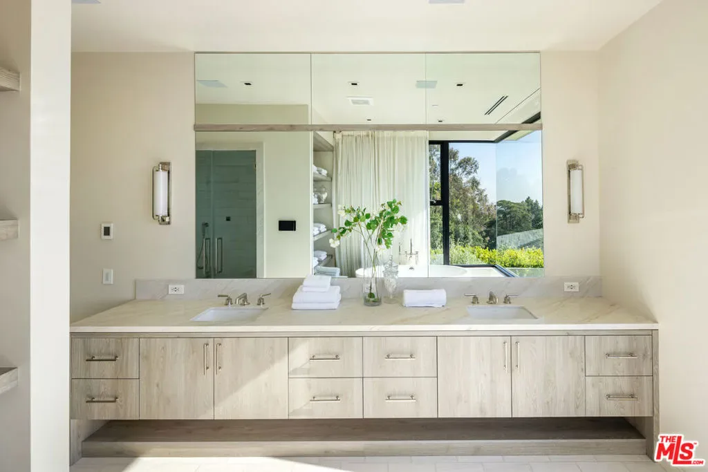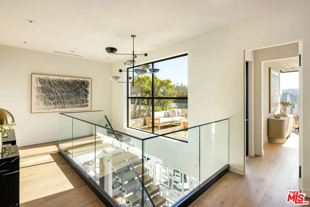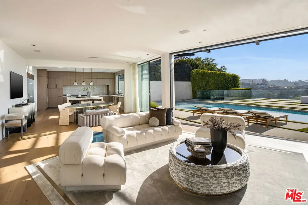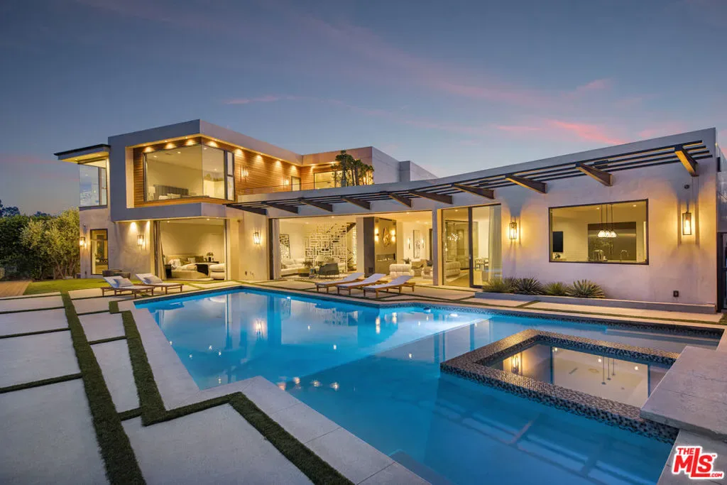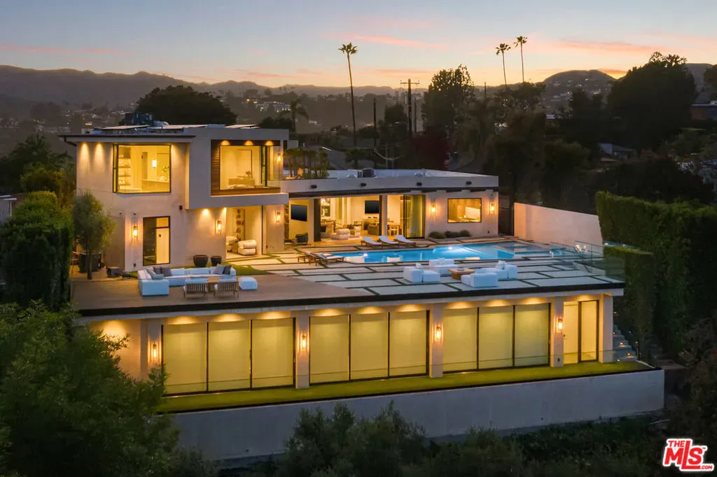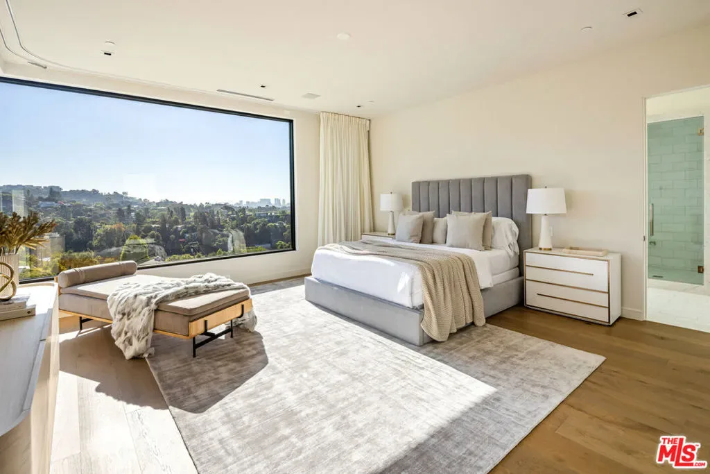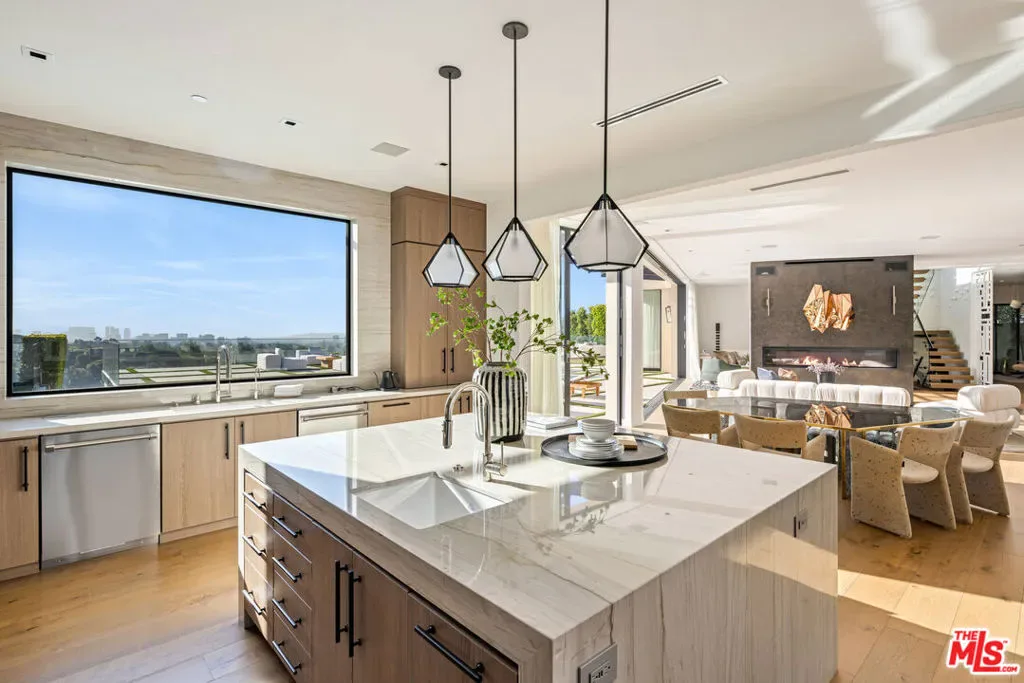 Elevated above Los Angeles, this 8,500-square-foot Brentwood estate offers sweeping, 280 degree views from the Getty Center to the shimmering lights of Downtown. Designed for both comfort and luxury, the estate features six bedrooms and eight bathrooms, including dual primary suites on both levels. Expansive 28-foot automated glass walls seamlessly connect indoor spaces to a private backyard oasis, complete with a pool, spa, and expansive deck. The gourmet kitchen boasts a massive center island, top-tier stainless steel appliances, and custom cabinetry. The lower level features space for an art gallery, expansive gymnasium, and versatile entertainment room. This residence offers a harmonious blend of modern design and perennial style, providing a serene retreat amidst the vibrant cityscape of Los Angeles.
