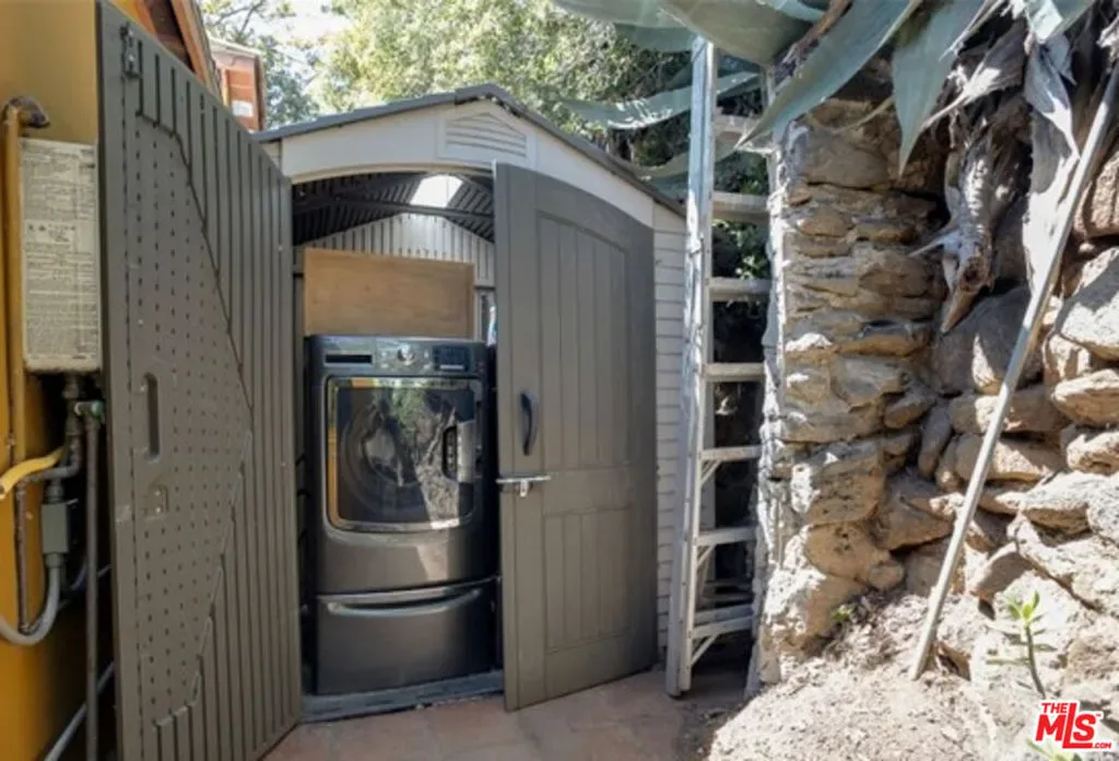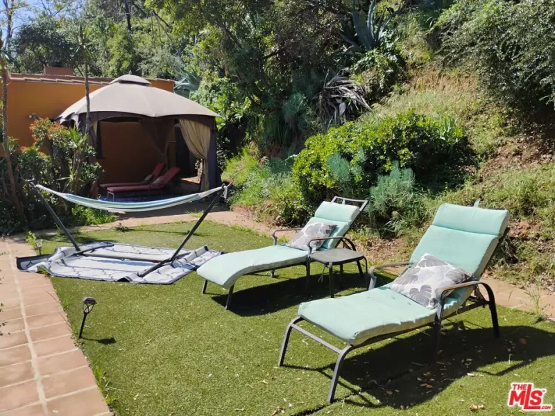 Set in a quiet Laurel Canyon setting, this one-bedroom, one-bath Spanish-style bungalow offers privacy, natural light, and sweeping canyon views. The property includes a separate studio with its own bathroom, ideal for a home office, guest space, or creative use. The main house features hardwood floors, high beamed ceilings, and a bright living area with a fireplace. The open kitchen includes bar seating and stainless steel appliances. The bathroom offers a vanity and a large tiled shower. Multiple outdoor areas surround the home, including a spacious deck off the main house with expansive views perfect for relaxing or entertaining. Additional features include on-site laundry and two parking spaces. The home is set above the street and accessed via a long outdoor staircase, adding to its privacy and peaceful, tucked-away feel. Conveniently located near hiking trails with easy access to Hollywood. Available furnished or unfurnished, depending on tenant preference.