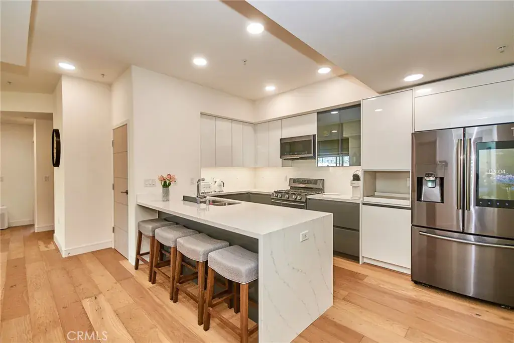 This particular unit is facing on the corner of South and East side on the 3rd floor. It is always bright and airy and this Home offers comfort and luxurious LA living style within prime Residential area near Hancock Park/the heart of K-town and easy access to Beverly Hills, West Hollywood, and Downtown LA, this home also offers comfort, security, and luxurious living style, Featured with 3 spacious bedrooms and 2 full bathrooms, Outfitted with high-end appliances in Kitchen, including cabinetry doors and drawers have exceptional quality came from K-craftmanship, the Mater suit has own shower booth in addition to a bathtub in its bathroom, overlooking broad view of the neighborhood from balconies, secured entry through the elevator from the parking lot, rooftop BBQ resting area, secured with surveillance cameras and entries throughout. Most of all, there are more than enough parking spaces (3 assigned parking space) enable to set up an EV-charging station for this unit in addition to the guest parking lots.