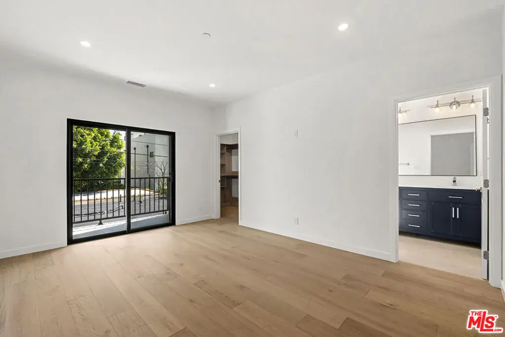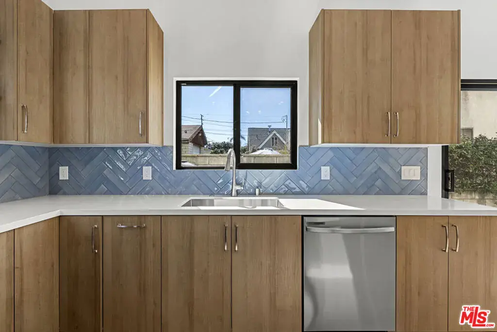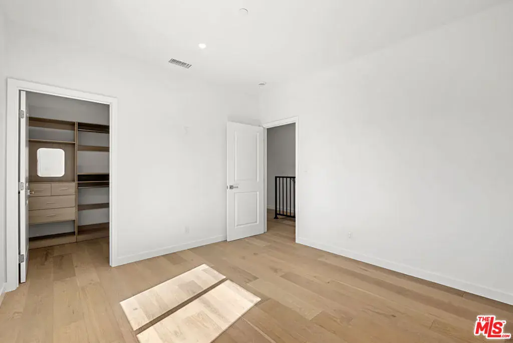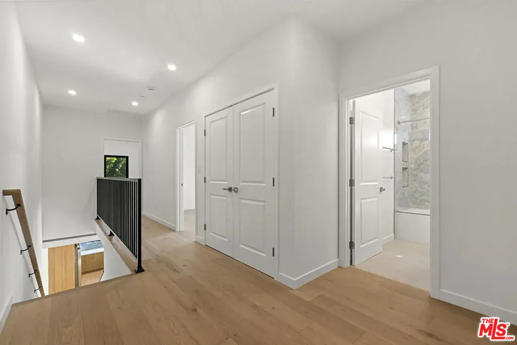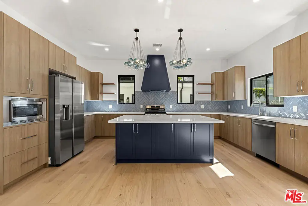 This brand-new contemporary duplex offers 4 bedrooms and 3.5 baths, designed with elevated finishes and modern elegance. The interior features hardwood floors and an open-concept layout filled with natural light. The chef’s kitchen anchors the home, featuring warm wood cabinetry, sleek stainless steel appliances and a striking blue herringbone tile backsplash. The oversized waterfall island provides generous prep space, abundant storage, and the perfect gathering spot beneath designer glass globe chandeliers. The main floor also includes a guest bedroom/office with an ensuite bathroom, offering privacy for guests or separation for remote work. Upstairs are 3 bedrooms, including the primary bedroom with ensuite bathroom, private balcony, and a custom walk-in closet with built-in shelving. This move-in-ready home balances warmth and sophistication with easy access to local amenities including shopping, dining, and major commuter routes while maintaining a peaceful residential setting.