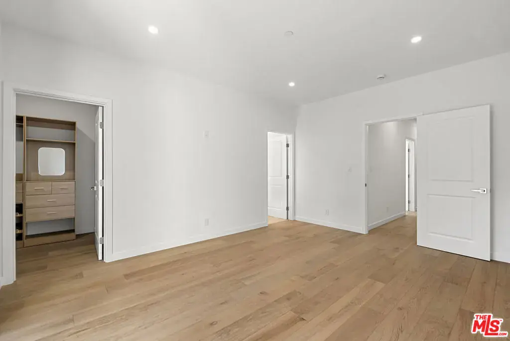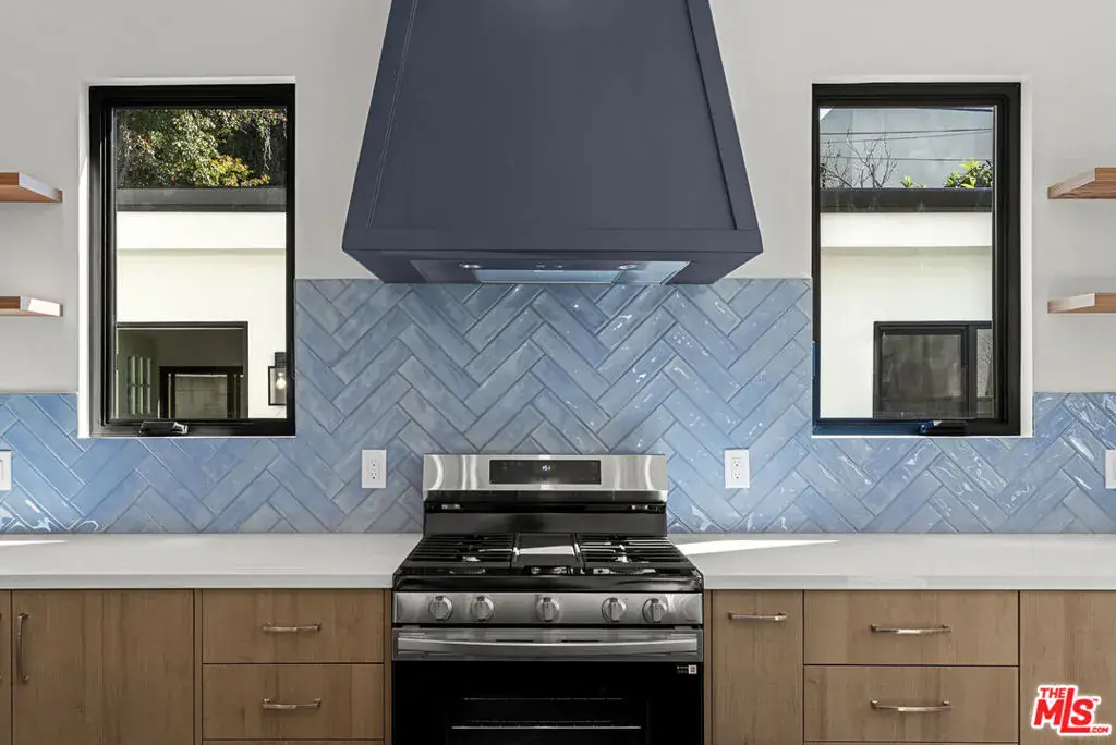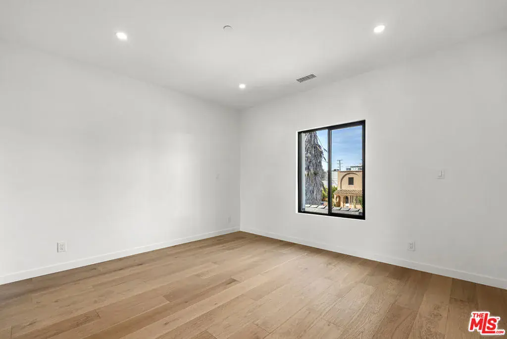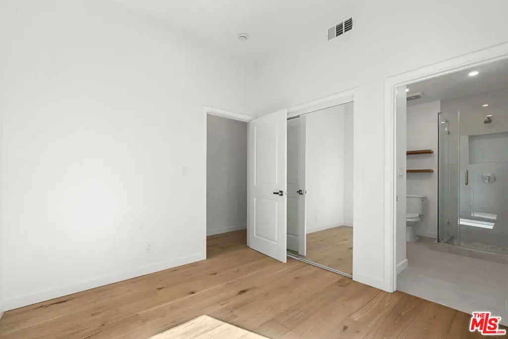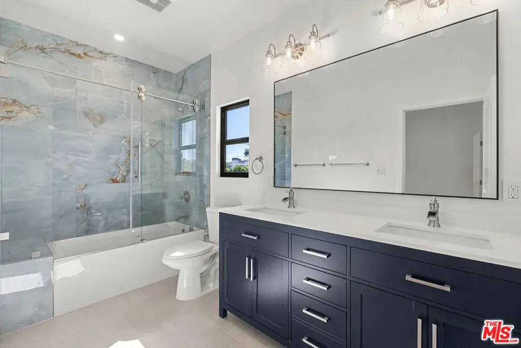 This brand-new contemporary duplex offers 4 bedrooms and 3.5 baths, designed with elevated finishes and modern elegance. The interior features hardwood floors and an open-concept layout filled with natural light. The chef’s kitchen anchors the home, featuring warm wood cabinetry, sleek stainless steel appliances and a striking blue herringbone tile backsplash. The oversized waterfall island provides generous prep space, abundant storage, and the perfect gathering spot beneath designer glass globe chandeliers. The main floor also includes a guest bedroom/office with an ensuite bathroom, offering privacy for guests or separation for remote work. Upstairs are 3 bedrooms, including the primary bedroom with ensuite bathroom, private balcony, and a custom walk-in closet with built-in shelving. This move-in-ready home balances warmth and sophistication with easy access to local amenities including shopping, dining, and major commuter routes while maintaining a peaceful residential setting.