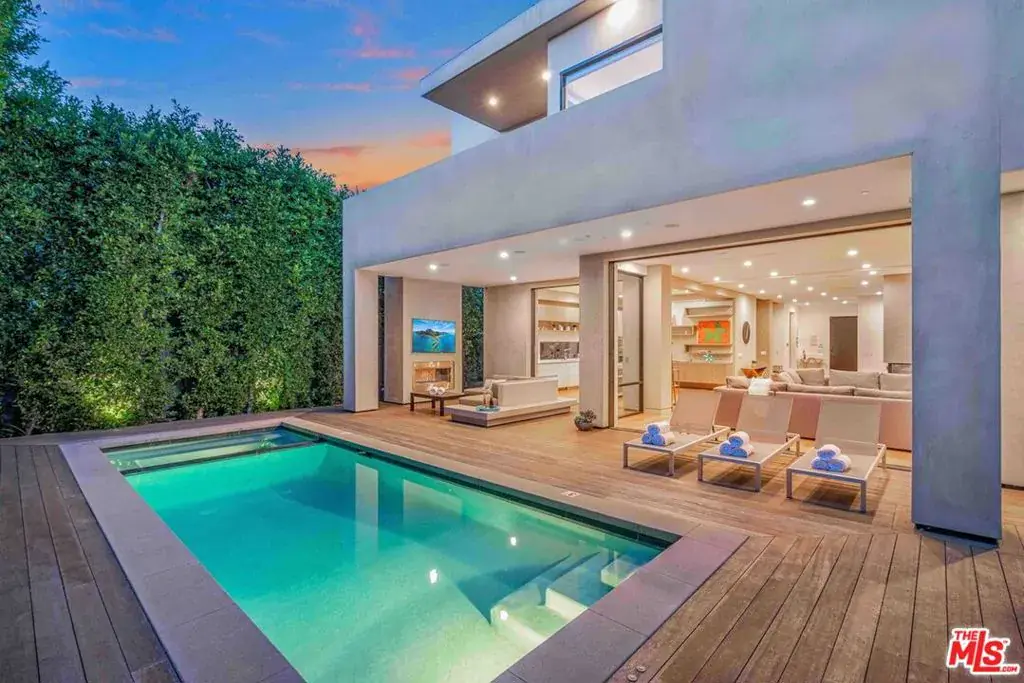 Stunning luxury villa located in the heart of West Hollywood between Melrose & Santa Monica Blvd. The new modern house is a hidden beauty for guests & families who seek absolute privacy while being close to all attractions. High-end finishes & technology including a Smart Home System & security cameras. Spectacular sunset views of LA & Hollywood Hills from the 1,600 sqft roof top deck w/ a fireplace. Gated & hedged for complete privacy in an elegant neighborhood with beautiful tree lines. Offering a modern private salt water heated pool & spa. 5 bedrooms, 6 baths w/ warm walnut floors. Spacious bedrooms w/ balconies, walk-in closets & walk-in showers. Gated entry leads to the open and airy atrium courtyard which opens to spacious living room of sheer elegance & impeccable architectural details. 16 ft ceilings offer great open floor plan w/ a large dining area. Fully-equipped kitchen appointed with stainless steel appliances, a five-burner stove and hood.