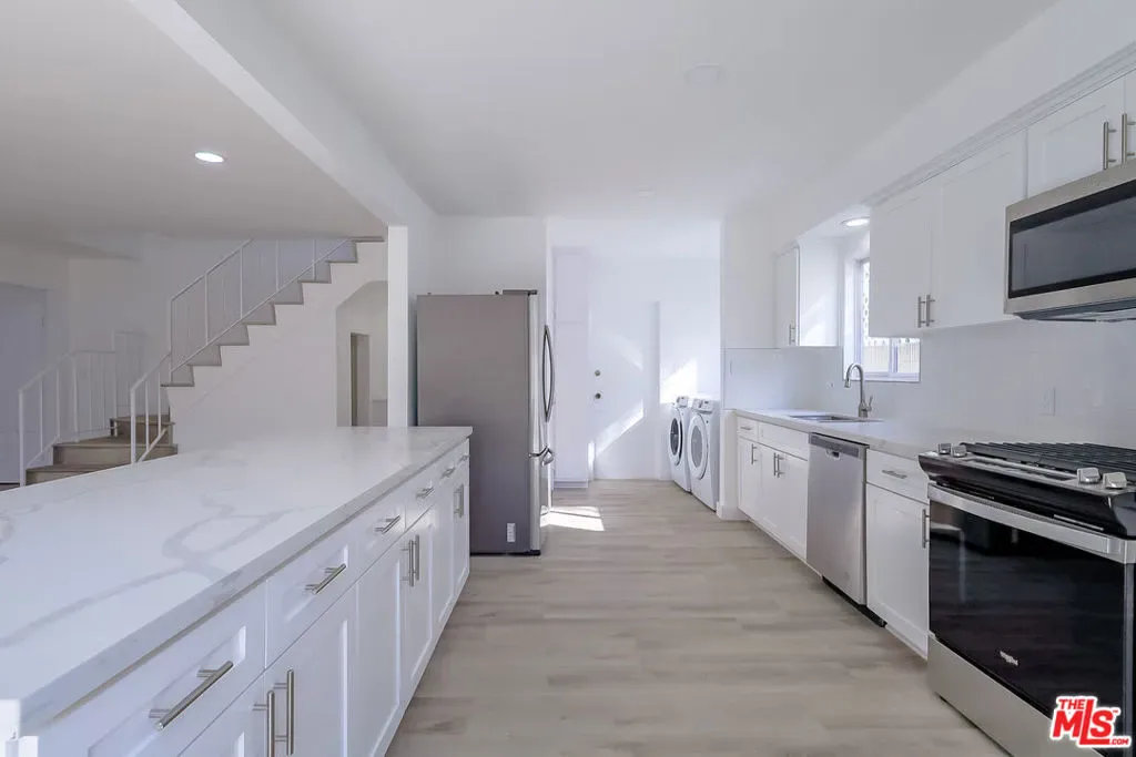Don’t miss out on the opportunity to lease this beautifully remodeled two story SFR style home in Miracle Mile. Completely detached from the other 3 units of a fourplex, this home offers all the benefits and privacy that a single family home would to it’s future tenant. Unit has its own 2 car garage and an additional space for a 3rd vehicle in the driveway. Just to name a few thewonderful features this home offers- you have central AC, brand new kitchen appliances, quartz kitchen counters, a massive kitchen island, new floors, remodeled bathrooms, and laundry. Unit also has a private back yard with sliding glass doors leading to the living room and dining room areas. Upstairs you will find 3 big bedrooms and 2 bathrooms. The master bedroom has its own bathroom complete with a double vanity. Location is very convenient and central. Enjoy the lifestyle the Miracle Mile neighborhood has to offer! Find yourself close to: Beverly Hills, The Grove, Erewhon, Hancock Park, major movie studios, and unbeatable nightlife. Amazing restaurants are walking distance from the property such as Met Him At A Bar.