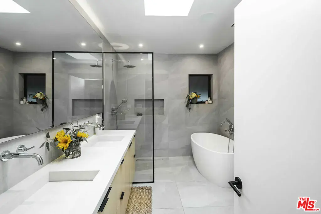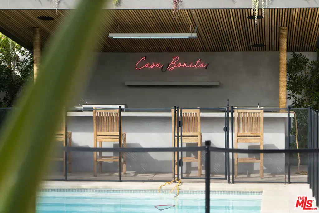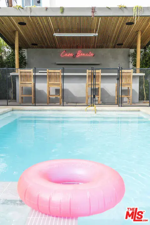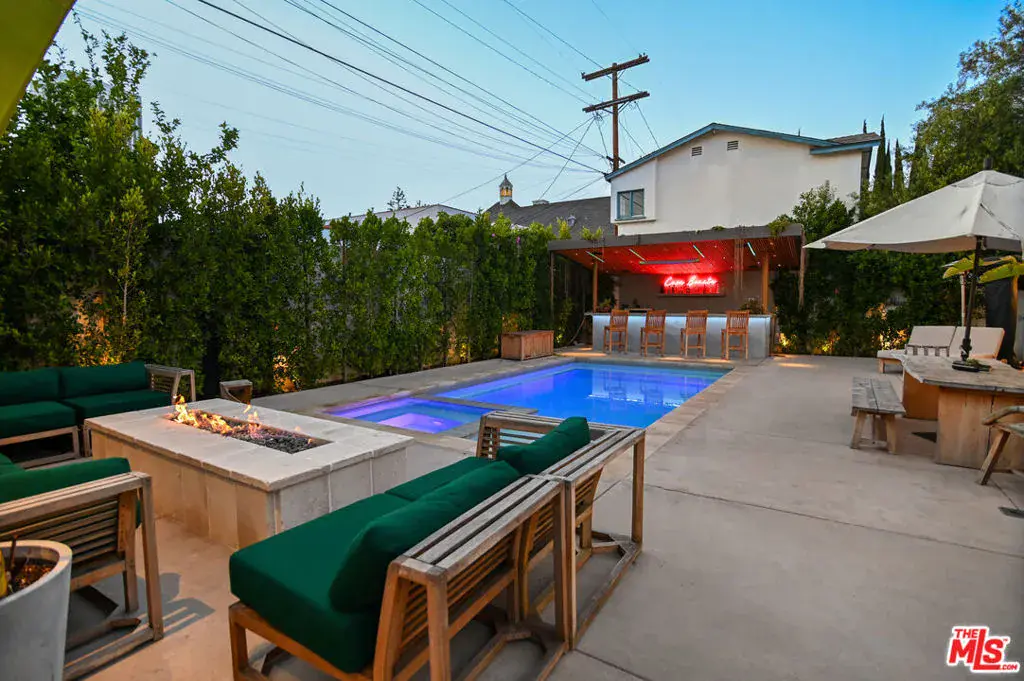 Available FULLY FURNISHED, Flexible Lease Length! Welcome to “Casa Bonita,” a luxurious sanctuary nestled in the heart of LA on a peaceful and quiet street. One of the only DOUBLE-WIDE LOT in Miracle Mile, giving the villa an exceptionally open feel. This exquisite villa is just steps away from Museum Row, Equinox, the Grove, the hottest restaurants and nightlife, Whole Foods, Trader Joe’s, and more. This villa boasts an array of luxurious amenities, including an outdoor gazebo/tiki bar, a heated pool and spa, an outdoor shower, and both outdoor and indoor fireplaces. The earthy interior design exudes tranquility, making you feel as if you’re on a perpetual vacation. With 5 bedrooms and 5 1/2 bathrooms, this spacious home features a detached, stylish guest house, an open floor plan, and a cozy ambiance. The bifold doors create a seamless indoor/outdoor environment, perfect for enjoying the beautiful LA weather. The chef’s kitchen is equipped with top-of-the-line appliances. Step outside to find a lush side yard, fruit trees, and a cherry blossom tree, creating a natural dreamscape right in the center of Los Angeles. The property also includes an outdoor 220v car charger for eco-friendly automobiles. This smart home is equipped with a state-of-the-art security system, Lutron smart lights, and a 2-zone NEST climate system, ensuring both luxury and convenience at your fingertips. Welcome to “Casa Bonita,” where everyday living feels like a lavish retreat.