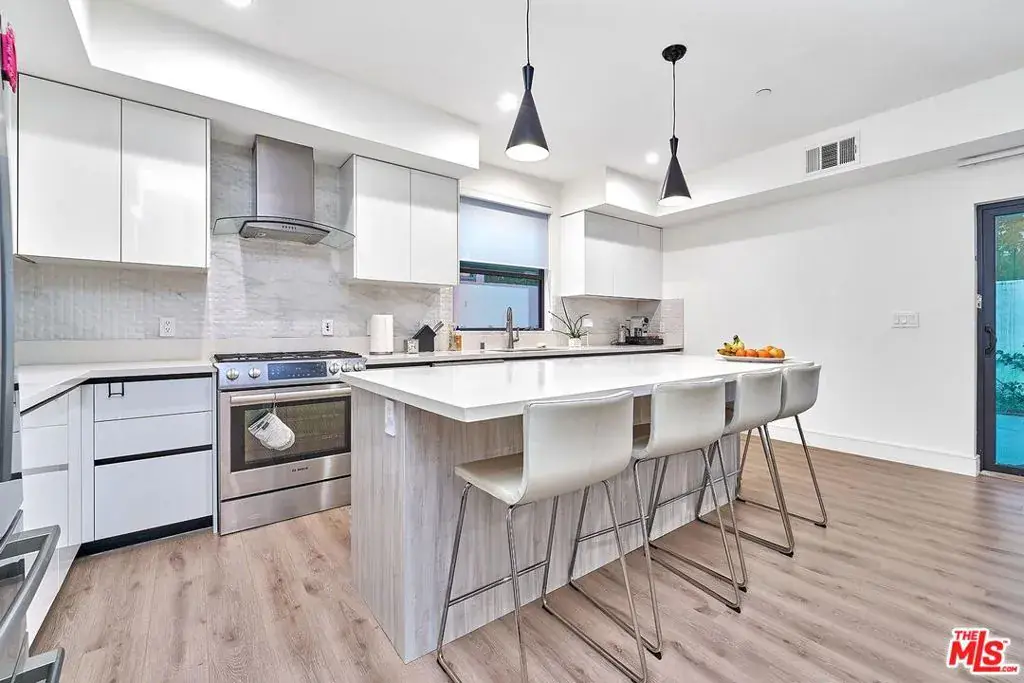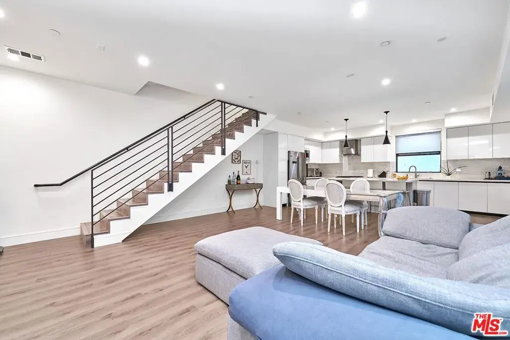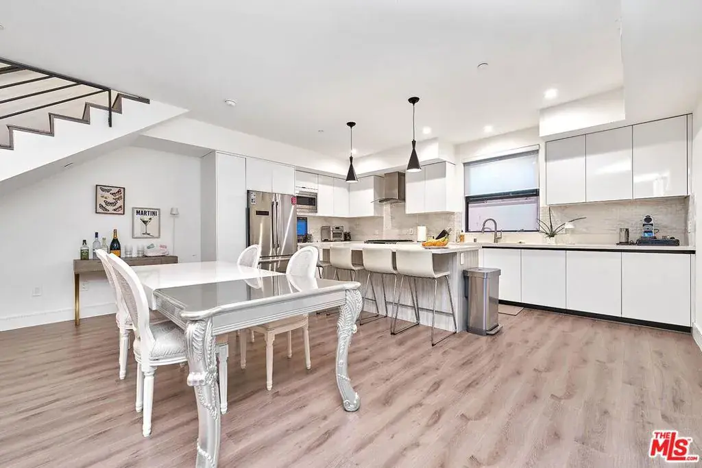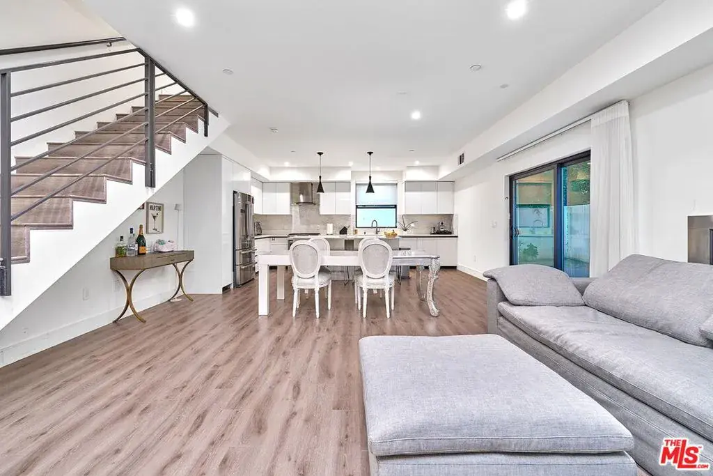 This condo showcases a refined and sophisticated design, filled with abundant natural light that creates a bright and inviting atmosphereideal for both relaxation and entertaining. Each bedroom features its own private balcony, and this is the only unit that offers an exclusive private patio. A modern glass fireplace adds warmth and style, while the dream kitchen is fully equipped with top-of-the-line Bosch and Kohler stainless steel appliances, complemented by elegant lighting.The primary suite boasts a luxurious bathroom with a soaking tub, a separate shower with designer massage features, and a spacious industrial-style walk-in closet. High ceilings, skylights, a private balcony, and beautiful views further elevate the second-floor living space. Ideally located close to Santa Monica Boulevard and Melrose Avenue, and just minutes by car from Runyon Canyon and The Grove.