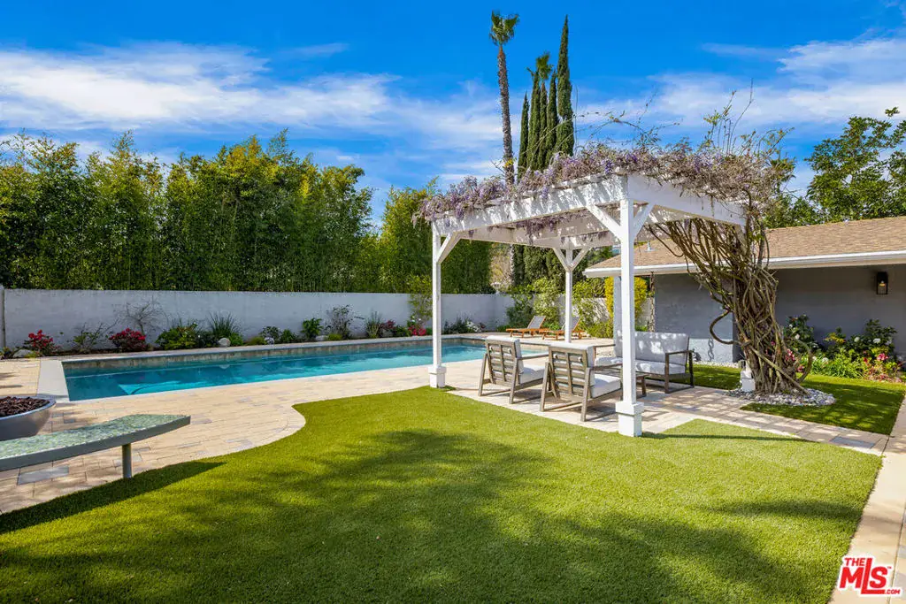 Beautifully updated 4BD/3BA home in coveted Laurel Hills with sweeping Valley views. Bright, open layout with vaulted ceilings and seamless indoor/outdoor flow. Designer kitchen, featured on Valerie Bertinelli’s cooking show Valerie’s Home Cooking, offers top-tier appliances and quartz countertops. One bedroom is currently used as an office, providing excellent flexibility. Elegant primary suite includes a custom closet and spa-like bath with direct pool access. The private backyard features mature landscaping, built-in fire pit seating, and a large swimmer’s pool. Located in the Wonderland School District, close to the Mulholland Tennis Club, Runyon Canyon, Fryman Canyon, and with easy access to both the Westside and the Valley. A rare offering in a prime location.
