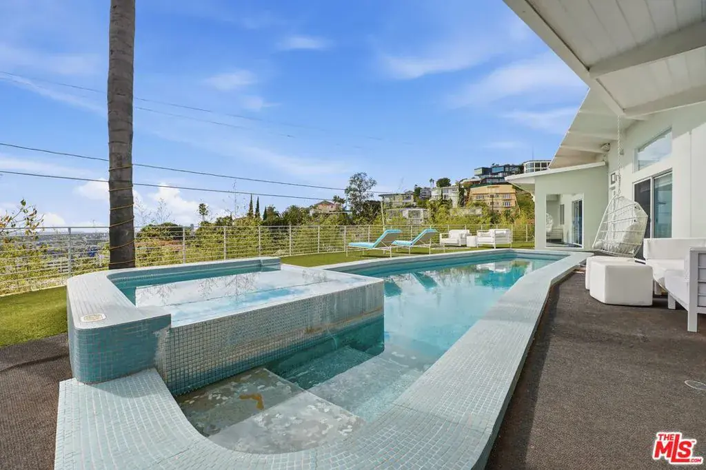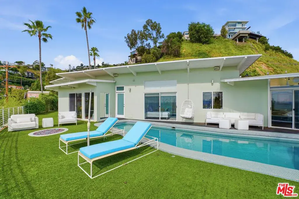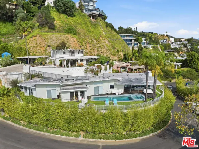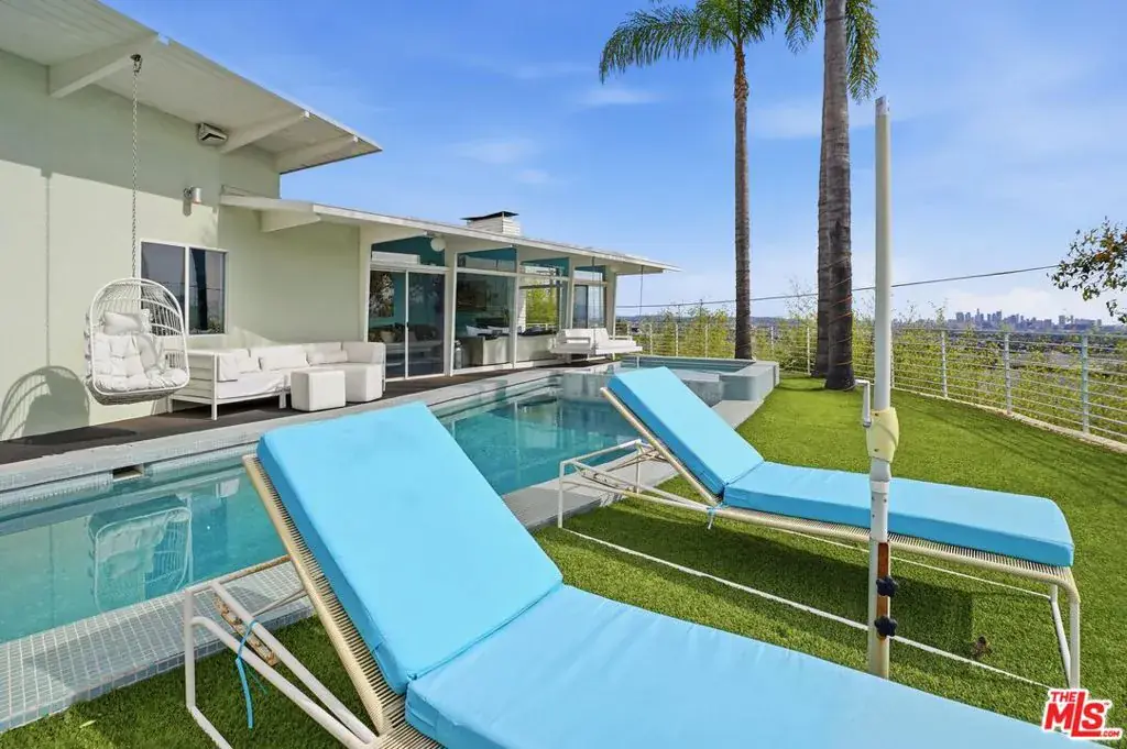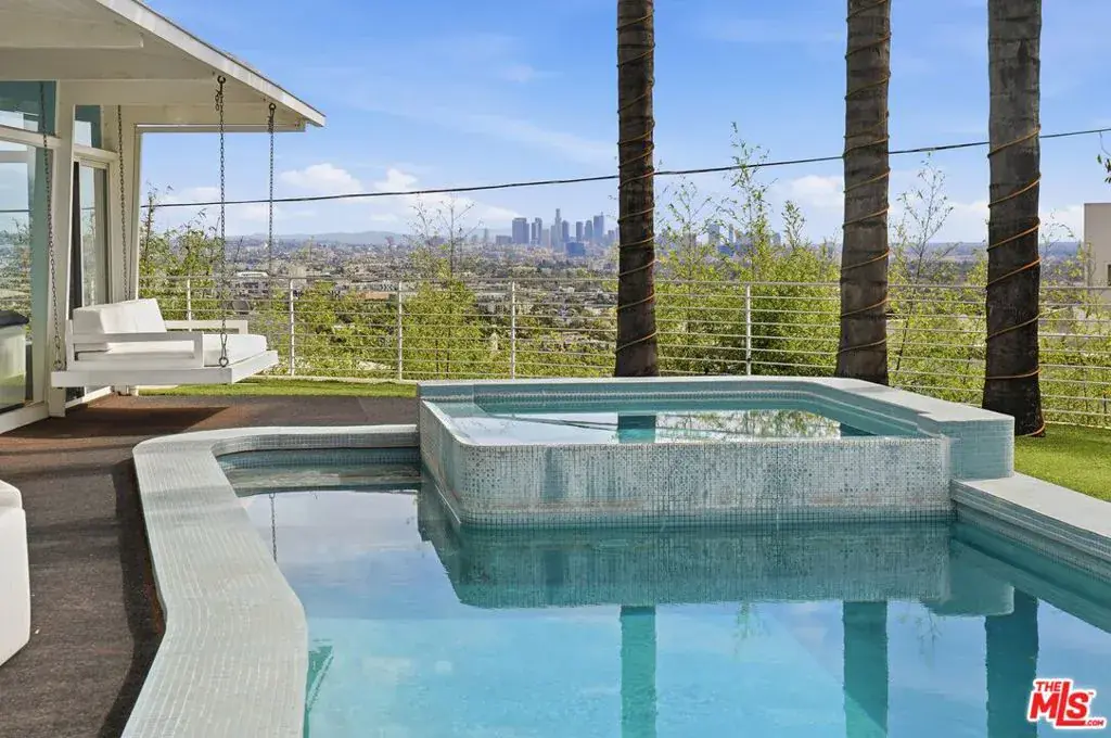 This exceptional 3-bedroom, 2-bath mid-century contemporary home offers breathtaking skyline views and an unbeatable Hollywood Hills location just minutes from the Sunset Strip, Beverly Hills, and Los Angeles’ best dining, culture, and nightlife. Blending privacy with convenience, the residence delivers a rare combination of seclusion and city access. Floor-to-ceiling windows frame sweeping vistas from downtown to the ocean while filling the south-facing home with natural light from sunrise to sunset. The open, indoor-outdoor design features three fireplaces, a professional-grade kitchen, dedicated office space, business-class Wi-Fi, dual HVAC systems, ample storage, and a double-car garage. Set securely on bedrock and surrounded by six iconic palm trees, 15-foot bamboo, and rosemary hedges, the property feels like a private resort. The saltwater pool and spa offer solar or gas heating, multiple entertaining areas, and tranquil outdoor living. Thoughtfully designed with comfort, elegance, and functionality in mind this is a true sanctuary that embodies the best of the California lifestyle.