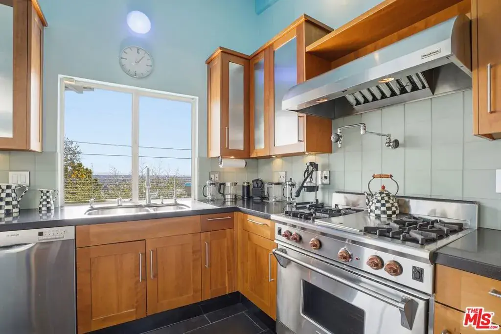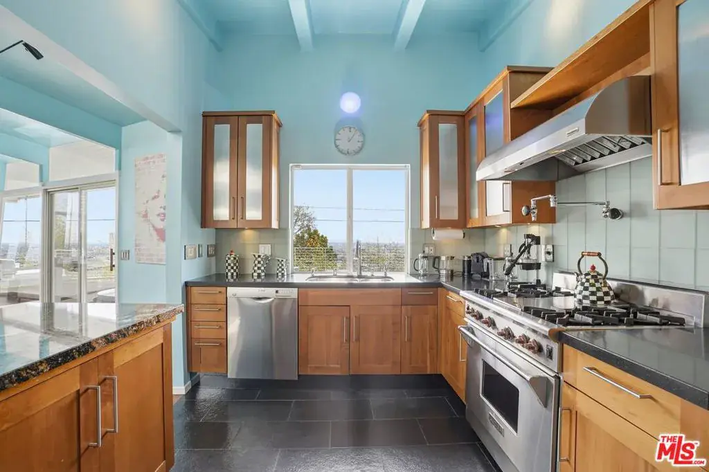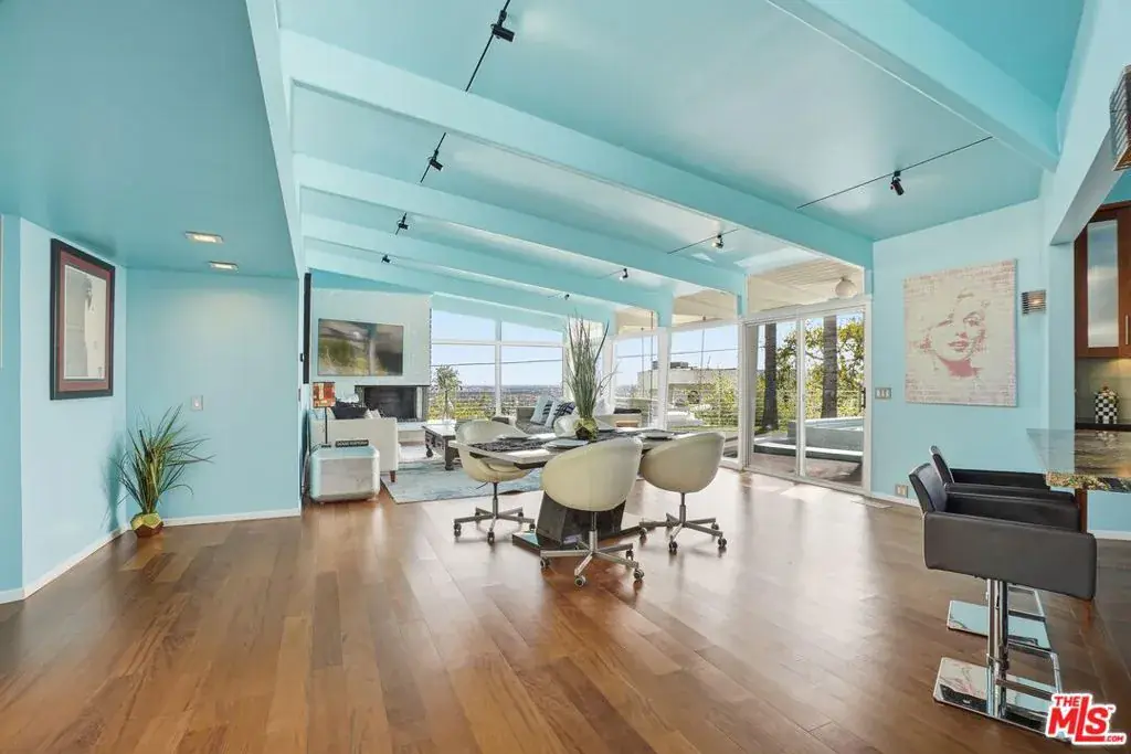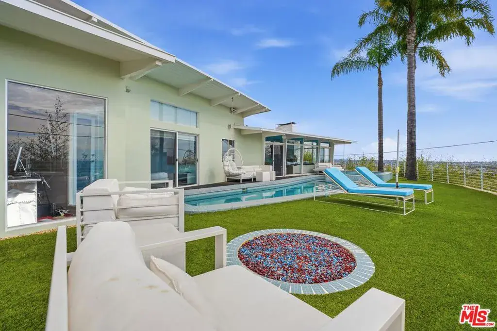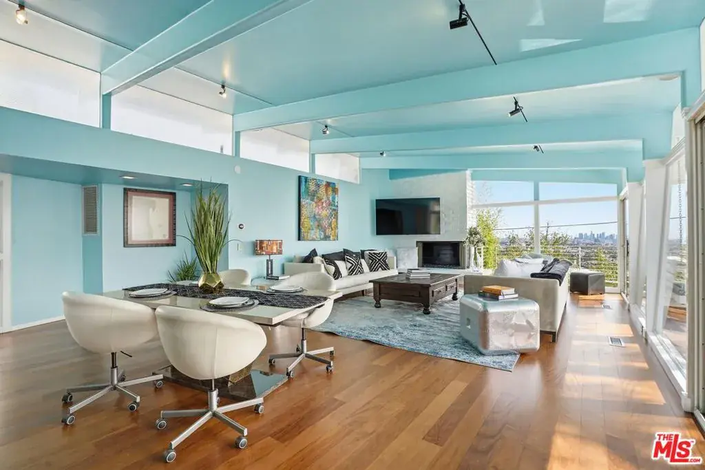 This exceptional 3-bedroom, 2-bath mid-century contemporary home offers breathtaking skyline views and an unbeatable Hollywood Hills location just minutes from the Sunset Strip, Beverly Hills, and Los Angeles’ best dining, culture, and nightlife. Blending privacy with convenience, the residence delivers a rare combination of seclusion and city access. Floor-to-ceiling windows frame sweeping vistas from downtown to the ocean while filling the south-facing home with natural light from sunrise to sunset. The open, indoor-outdoor design features three fireplaces, a professional-grade kitchen, dedicated office space, business-class Wi-Fi, dual HVAC systems, ample storage, and a double-car garage. Set securely on bedrock and surrounded by six iconic palm trees, 15-foot bamboo, and rosemary hedges, the property feels like a private resort. The saltwater pool and spa offer solar or gas heating, multiple entertaining areas, and tranquil outdoor living. Thoughtfully designed with comfort, elegance, and functionality in mind this is a true sanctuary that embodies the best of the California lifestyle.
