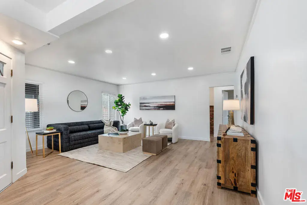Step into sophistication and comfort with this elegantly transformed 3-bedroom, 2-bathroom home in the heart of Loyola Village, Westchester. From its designer Hardie plank siding and chic new vents to its light-filled interiors, this residence blends elevated modern upgrades with timeless charm.Inside, new flooring flows seamlessly throughout, complemented by upgraded door casings, baseboards, and elegant crown molding with colonial-style faux beams. The living and family rooms shine with fresh window trims, a new front door, and plenty of space to relax or entertain, anchored by a classic red brick fireplace.The chef’s kitchen features quartz counters, brand-new appliances, and a cozy dining nook perfect for both quick bites and dinner parties.Upstairs, the renovated primary suite is a true retreat, featuring newly installed skylights, recessed dimmable lighting, windows, and a spacious walk-in closet. The en-suite bathroom offers dual vanities and a spa-like vibe, while new flooring extends to the staircase for a polished touch.The first-floor bedrooms are versatile for family, guests, or your home office, and the updated bathroom boasts a new vanity, mirror, toilet, and tile flooring.Outside, the newly built deck wraps around the backyard and side of the garage, making it ideal for BBQs, lounging, or hosting friends. An EV charger, brand-new A/C with Wi-Fi Nest thermostat, and modern recessed lighting throughout complete the upgrades. Minutes from Loyola Marymount University, Silicon Beach, LAX, shops, dining, and the coast, this home nails location, lifestyle, and design. Why settle when you can have it all? Move right in and start living the Westchester dream.