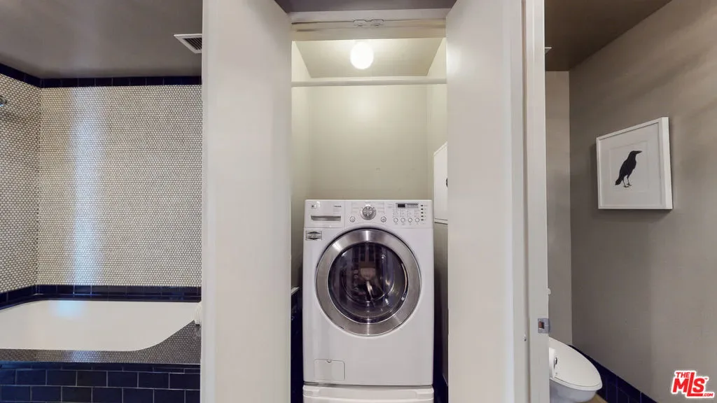 Exceptional corner loft at the iconic and historic Eastern Columbia building, an Art Deco landmark. Owners currently benefit from the coveted Mills Act contract, which provides nearly 70% off property taxes annually. Situated on the 7th floor on the highly desirable southwest corner, this light-filled live/work loft includes a RARE DEEDED STORAGE UNIT. The stylish loft features polished concrete floors, tall ceilings, and a breathtaking display of windows spanning the south and west sides. Enjoy the bespoke bedroom suite tucked away with a Kelly-Wearstler-designed ensuite bathroom with linen storage, and a fully built-out closet. For guests, there is a custom murphy bed hidden behind an original art wall, and a second bathroom with full shower. An entertainer’s dream, the open plan kitchen flows into the spacious and flexible living area where you’ll find custom banquette seating underneath the windows for more storage. Central heat and new AC, W/D, 1 assigned prime parking space in the garage, and an EXTREMELY RARE DEEDED STORAGE UNIT make this loft an exceptional opportunity. HOA Dues include water, trash, gas, 24/7 reception, parking. The landmark building features 24/7 front desk security, iconic clock tower with rooftop pool, hot tub, sundeck, courtyard, and fitness center. Within blocks to all the best of DTLA, such as the Proper, Hoxton, Whole Foods, Mykita, The Broad, Fashion District, GRAMMY Museum, Grand Central Market, City Market South, Walt Disney Concert Hall, the upcoming Erewhon Market a block away, and more.