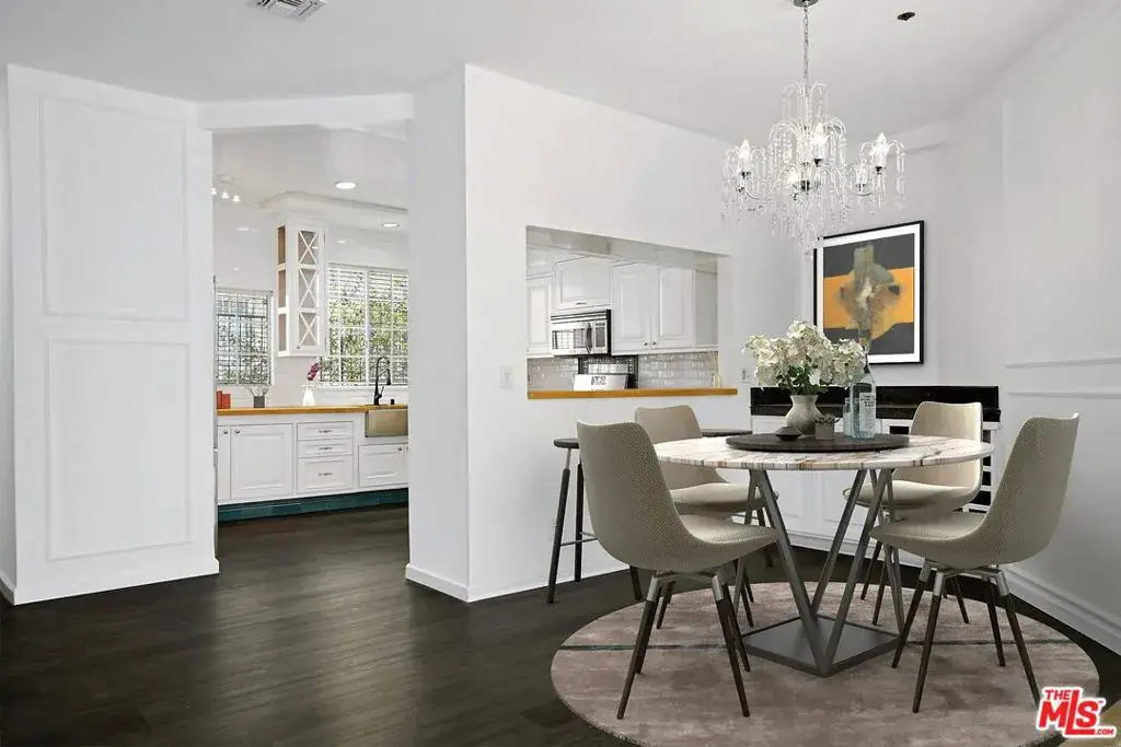 Dreamy updated 2-story townhome in the heart of WeHo is vacant and ready for immediate occupancy! Sun-soaked 3 bedroom, 2.5 bath perfectly situated blocks to trendy Melrose Ave, chic Santa Monica Bl, and across the street from Poinsettia Park/Rec Center. Recent upgrades in the unit feature an truly incredible kitchen with many new appliances, opening to an airy dining area, and a natural flow in to the spacious living/great room. The upstairs functionally features 3 bedrooms with stunning soaring vaulted ceilings in the Primary Suite. Each unit has its own outdoor niche, perfect for dining or barbecuing. This unit has central HVAC, 2 designated and gated parking spaces, large (approx 8×8) private storage, private laundry inside the unit. This one is a must see! (Staging in photography is digital.) Smaller pet considered.