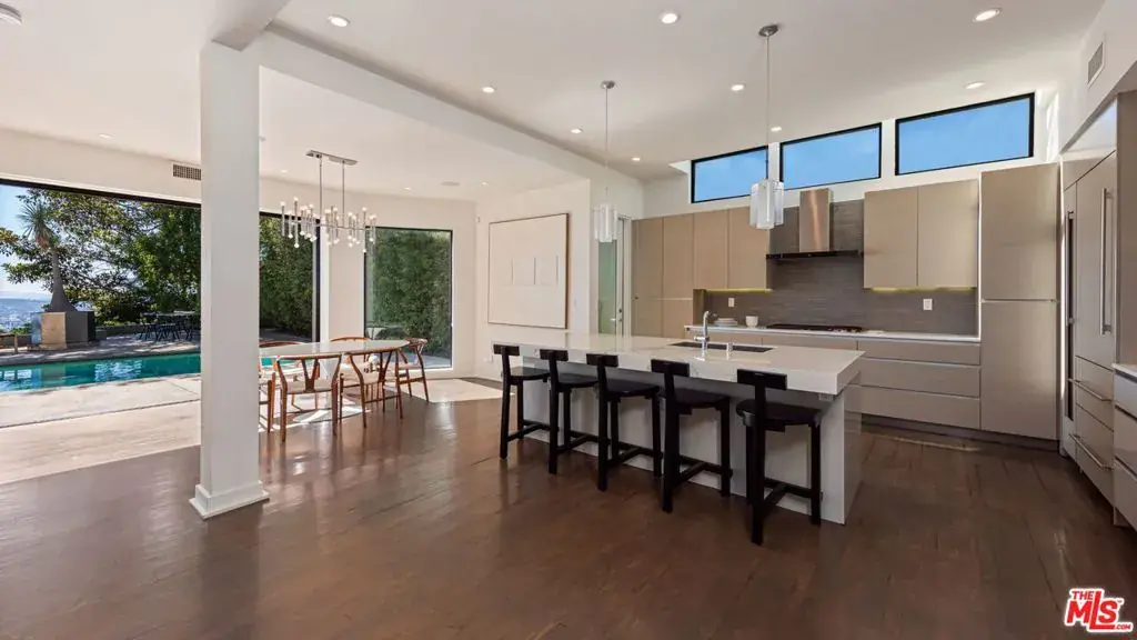 Designed by acclaimed architect Marmol Radziner, this striking modern residence captures breathtaking panoramic views stretching from downtown Los Angeles to the Pacific Ocean. Located just moments from the Sunset Strip’s premier dining, nightlife, and shopping, it offers the perfect balance of luxury, privacy, and convenience.Expansive glass walls frame open living spaces that transition seamlessly between the chef’s kitchen, dining area, and a flexible lounge that can serve as a private screening room. The outdoor spaces are ideal for entertaining, featuring a sparkling pool, outdoor shower, built-in BBQ, and multiple terraces positioned to take in the glittering city lights.Thoughtfully updated throughout, the home includes modern bathrooms, contemporary flooring, premium appliances, and new climate systems. Upstairs, two spacious primary suites feature fireplaces, walk-in closets, office areas, and retractable glass doors that open to a terrace with its own fireplace and mesmerizing skyline views.This turnkey contemporary residence exemplifies exceptional craftsmanship, timeless design, and an unmatched location in one of Los Angeles’ most sought-after neighborhoods.