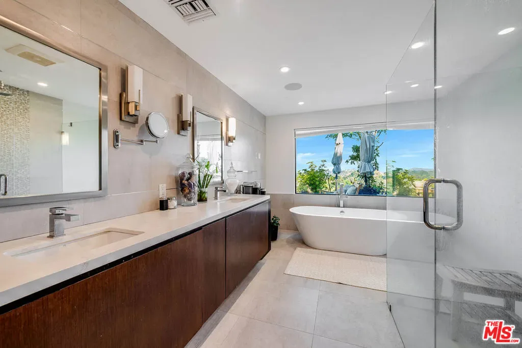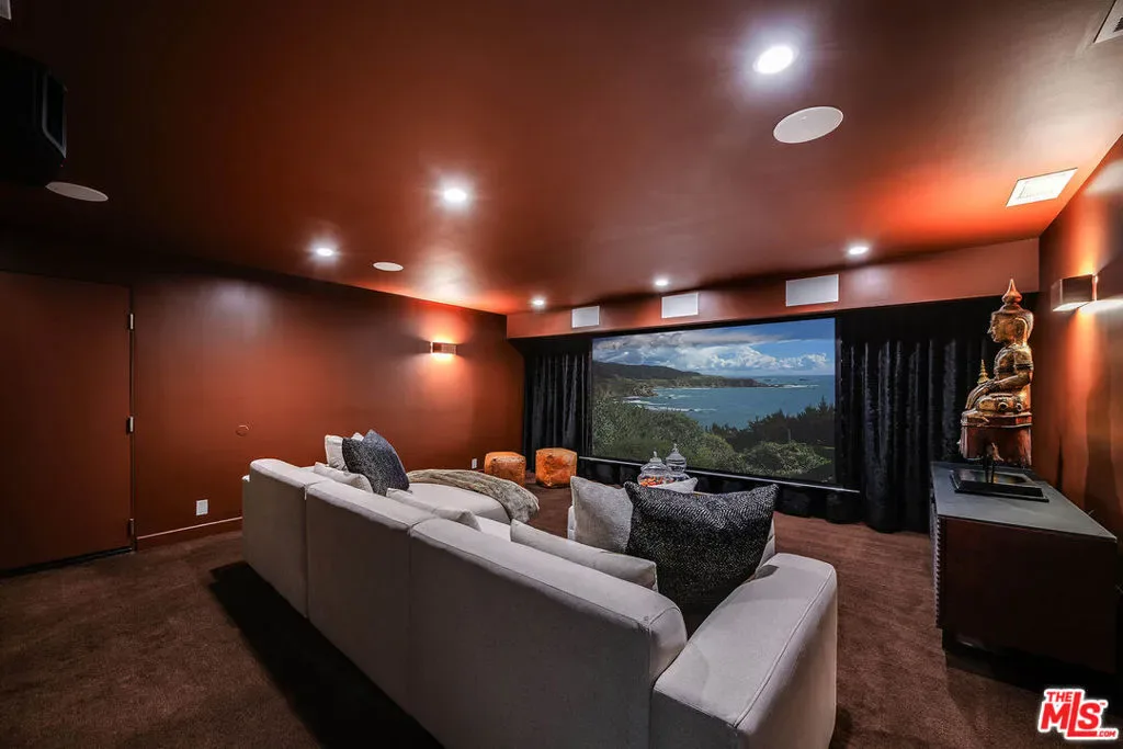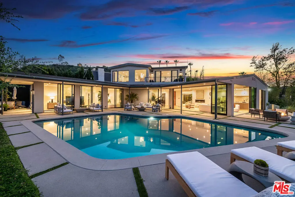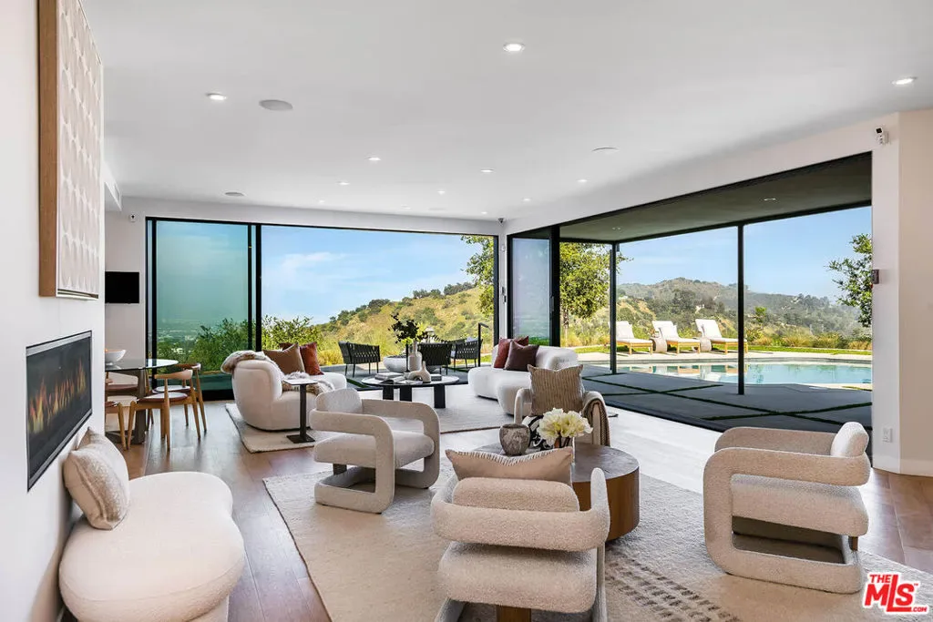 ELEVATED LUXURY WITH SWEEPING PANORAMIC VIEWS. Upon entry, the residence reveals a breathtaking skyline stretching from downtown Los Angeles across the San Fernando Valley to the distant mountains beyond. Walls of Fleetwood glass invite an abundance of natural light, guiding the eye toward vistas that define each living space. The interiors transition with ease and intention. In the great room, the city unfolds as a living backdrop. Just beyond, the pool terrace offers a serene escape, ideal for sunlit mornings or evenings illuminated by the shimmer of city lights. The kitchen serves as both a striking centerpiece and a natural gathering place. European cabinetry, beveled Dekton Rem surfaces, and a full suite of Miele appliances create an environment equally suited for entertaining or everyday living. Every element has been thoughtfully curated. Two primary suites provide a true five-star experience, each opening to a private terrace for quiet sunrise or sunset moments. Spa-inspired baths by Porcelanosa feature glass-enclosed showers, soaking tubs, and expansive walk-in closets, completing the sense of refined retreat. A private theater and integrated smart home system enhance both comfort and convenience. Set on a promontory at the end of a tranquil cul-de-sac, the property offers exceptional privacy while remaining just minutes from Beverly Hills, the Valley, and downtown Los Angeles. Here, each day begins and concludes with extraordinary views and an effortless, elevated lifestyle.