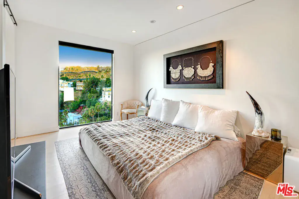 Tastefully remodeled contemporary home in the Hollywood Hills featuring sweeping city and canyon views. This three-bedroom, four-bath residence offers dramatic glass walls and expansive decking, creating seamless indoor-outdoor living. Ideally located for both privacy and convenience, just moments from shopping, dining, and entertainment.