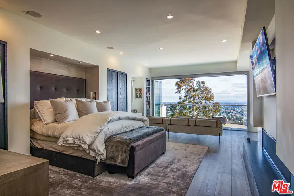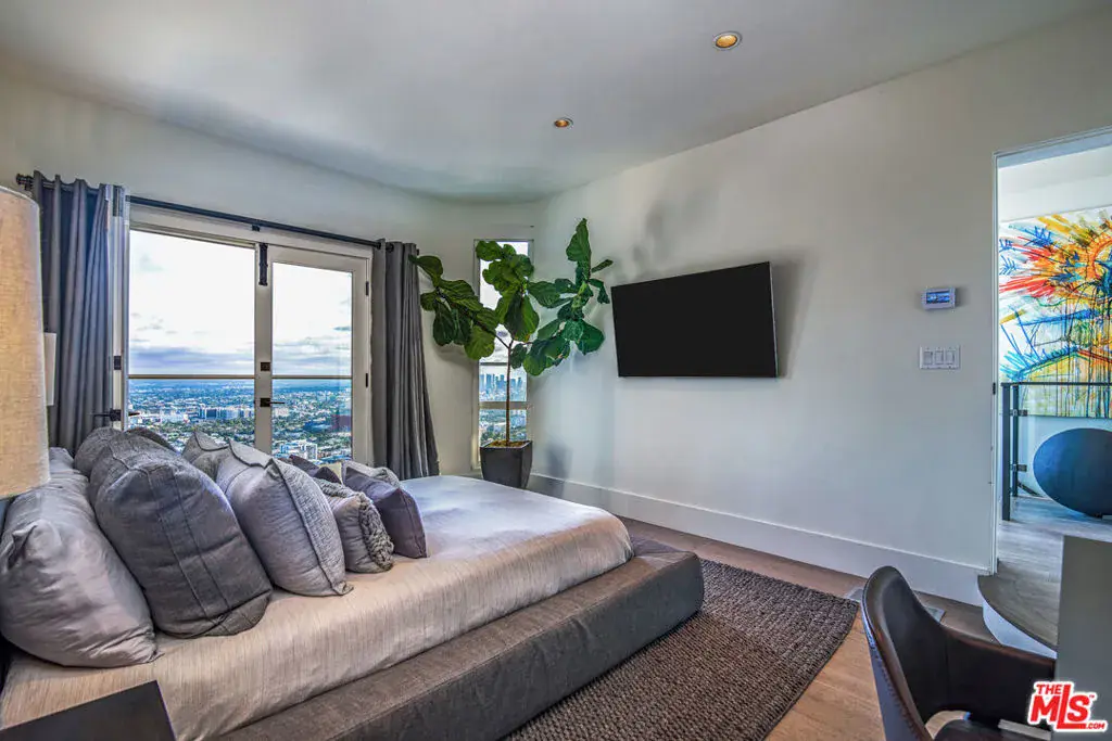 Perched high above the Sunset Strip with an unobstructed panorama stretching from downtown to the Pacific, this masterfully reimagined estate offers one of the most commanding views in all of Los Angeles. Every element of the home has been designed to enhance its cinematic setting, beginning with an expansive main level that unfolds across gallery-height ceilings, dramatic picture windows, and a sweeping wrap-around terrace. A sense of visual rhythm is established through the thoughtful use of rich wood, hand-selected marble, and tactile seagrass accents that create warmth and texture throughout the open-plan living and dining spaces. The chef’s kitchen is both functional and inviting, seamlessly integrated into the flow of the home while maintaining a striking visual presence. The primary suite feels like a sanctuary suspended above the city, with floor-to-ceiling glass doors that fully retract to erase the boundary between inside and out. A custom walk-in closet reminiscent of a high-end boutique offers tailored storage and elevated design, while the marble-clad ensuite bath provides a spa-like escape. Beyond the private balcony, a soaking tub, cold plunge, and infrared sauna create a serene outdoor retreat all oriented toward the ever-changing skyline below. Two additional guest bedrooms and three and a half bathrooms are equally well-appointed, offering privacy and comfort without sacrificing style. Designed for those who love to entertain, the residence also features a state-of-the-art ten-seat theater, a fully mirrored gym, and expansive terraces that wrap the home, offering multiple vantage points to take in the surrounding city lights. Outdoors, the experience continues with a series of curated spaces: a shaded lounge for quiet conversation, a sun deck that invites lingering afternoons, a dramatic plunge pool with waterfall feature, and a glass-walled rooftop sauna that feels suspended above the city. Just minutes from the heart of West Hollywood’s most celebrated shopping and dining destinations, this is a rare offering that pairs architectural refinement with unmatched elevation both literal and experiential.