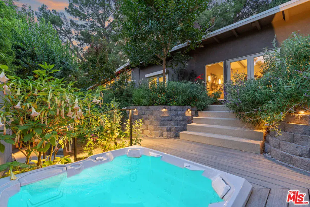 The Rodenberg Residence | c.1954 Mid-Century Modern Masterpiece | Secluded within the storied hills of Laurel Canyon, the Rodenberg Residence is a true Mid-Century Modern retreat designed in 1954 and privately tucked behind gates on an expansive double lot. A rare find, this Palm Springs inspired Post & Beam offers the kind of privacy and architectural pedigree that defines the Hollywood Hills celebrity lifestyle. Walls of glass invite the outside in while preserving a serene sense of seclusion, flooding the interiors with natural light and framing canyon and garden views. The open living space anchored by a sculptural fireplace and custom built-ins feels both expansive and intimate, ideal for quiet evenings or chic entertaining. The skylit chef’s kitchen, outfitted with stainless appliances, is designed for gatherings that flow seamlessly out to the pool and deck. Here, the classic kidney-shaped pool and generous terraces create a private oasis for sun-drenched afternoons or starlit nights. The primary suite is a sanctuary within a sanctuary complete with a spa-like bath and doors that open directly to a discreet outdoor hot tub, perfectly hidden for private moments of relaxation and escape. With rear access to a private two-car garage from a concealed shared drive, this residence offers both convenience and discretion. The Rodenberg Residence is more than a home it is an architectural hideaway, where Mid-Century glamour meets ultimate privacy in the Hollywood Hills.