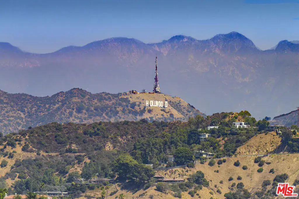 In a secluded part of the Hollywood Hills, enjoy views of the Hills, Hollywood Sign, and the Griffith Observatory from this 5 bedroom/5.5 bath, contemporary home. Tons of light pours into the house from oversized windows and skylights. Welcomed by incredible volume and a huge living room with a fireplace, wet bar, and a tremendous outdoor terrace. Super modern kitchen jeweled with stainless steel Bosch appliances, walk-in pantry, and a breakfast area. Adjacent is the formal dining room and office nook. All bedrooms are primary-sized suites with full baths. One of the suites has a private entrance with its own kitchenette (use as a separate ADU). Main primary suite boasts dual shower, separate spa tub, cedar walk-in closet, and a huge outdoor deck. Secure and gated. Other features include French oak floors, tons of storage area, 2-car garage, and (2) sets of washer-dryers. Great space for guests, tenants, studio, gym, and/or office space. Just minutes away from the heart of Hollywood, West Hollywood, Studio City, and easy SFV access.
