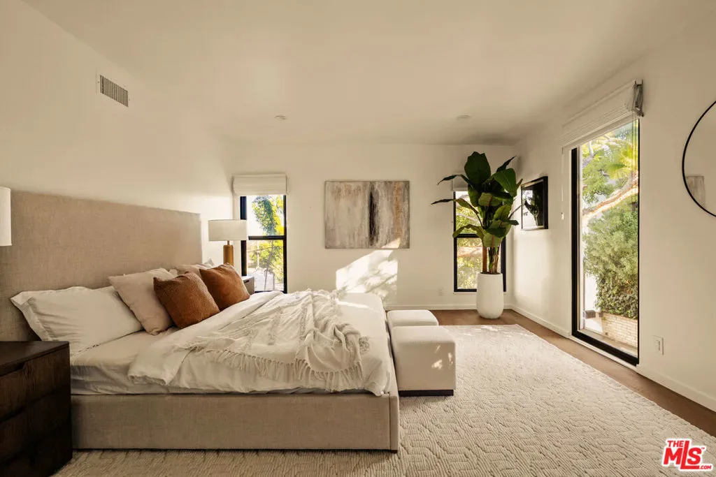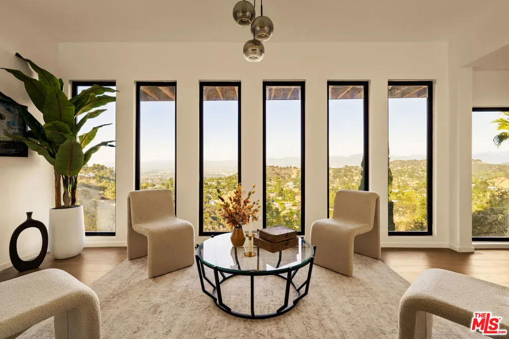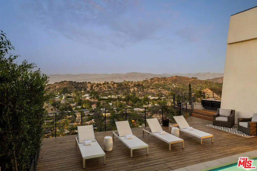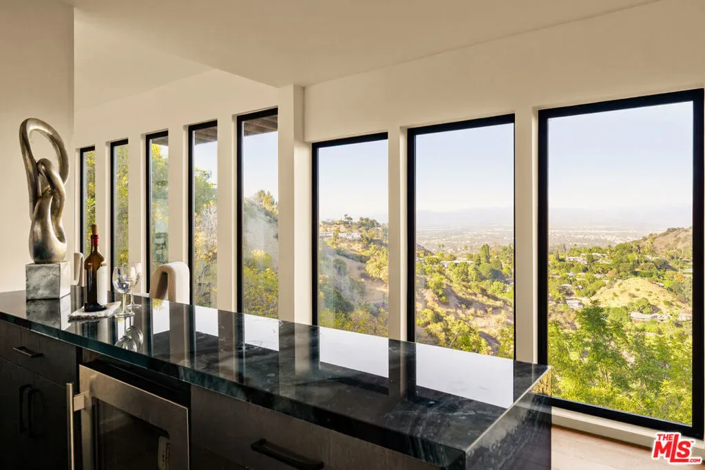 High above Laurel Canyon, the Skyline Residence is a private retreat where sweeping city and mountain views frame every moment. Expansive decks and a heated pool create an unmatched vibe–perfect for sun-soaked days, unforgettable nights, and effortless entertaining. From the moment you arrive, the home makes a striking impression. A sculptural curved plaster staircase rises beneath soaring ceilings, setting the stage for a space designed for both sophistication and comfort. The main level flows effortlessly from a statement-making living room to a dining area and into a chef’s kitchen appointed with custom oak cabinetry, quartzite counters, and top-of-the-line appliances. Walls of glass slide away, extending the living space onto the deck in a seamless expression of indoor-outdoor living–the very essence of the California lifestyle. The upper deck boasts a heated pool with panoramic city views and space for dining or lounging. Below, a covered terrace invites yoga sessions, cocktails, or shaded afternoons, while a private staircase winds down to a landscaped garden retreat. Upstairs, the primary suite is a true sanctuary. Wake up to walls of glass framing the skyline, then escape to a spa-like bath with a freestanding tub, stone-clad shower, custom vanity, and skylight that bathes the space in natural light. A boutique-style walk-in closet completes the suite. Two additional bedrooms and a sleek full bath offer flexibility for family or guests. The lower level is pure indulgence–an entertainer’s playground with multiple lounge areas, a striking custom bar, and even a hidden room tucked behind a bookshelf. The possibilities are endless: office, screening room, recording studio, wine cellar, or wellness lounge. Smart home features include a Lutron lighting system, integrated speakers, and a two-car garage. Situated on a quiet street in Laurel Canyon within the coveted Wonderland School district, you’ll enjoy unmatched privacy just minutes from the energy of West Hollywood, Beverly Hills, and Studio City. The Skyline Residence isn’t just a home it’s a lifestyle, a statement, and a masterpiece of design.